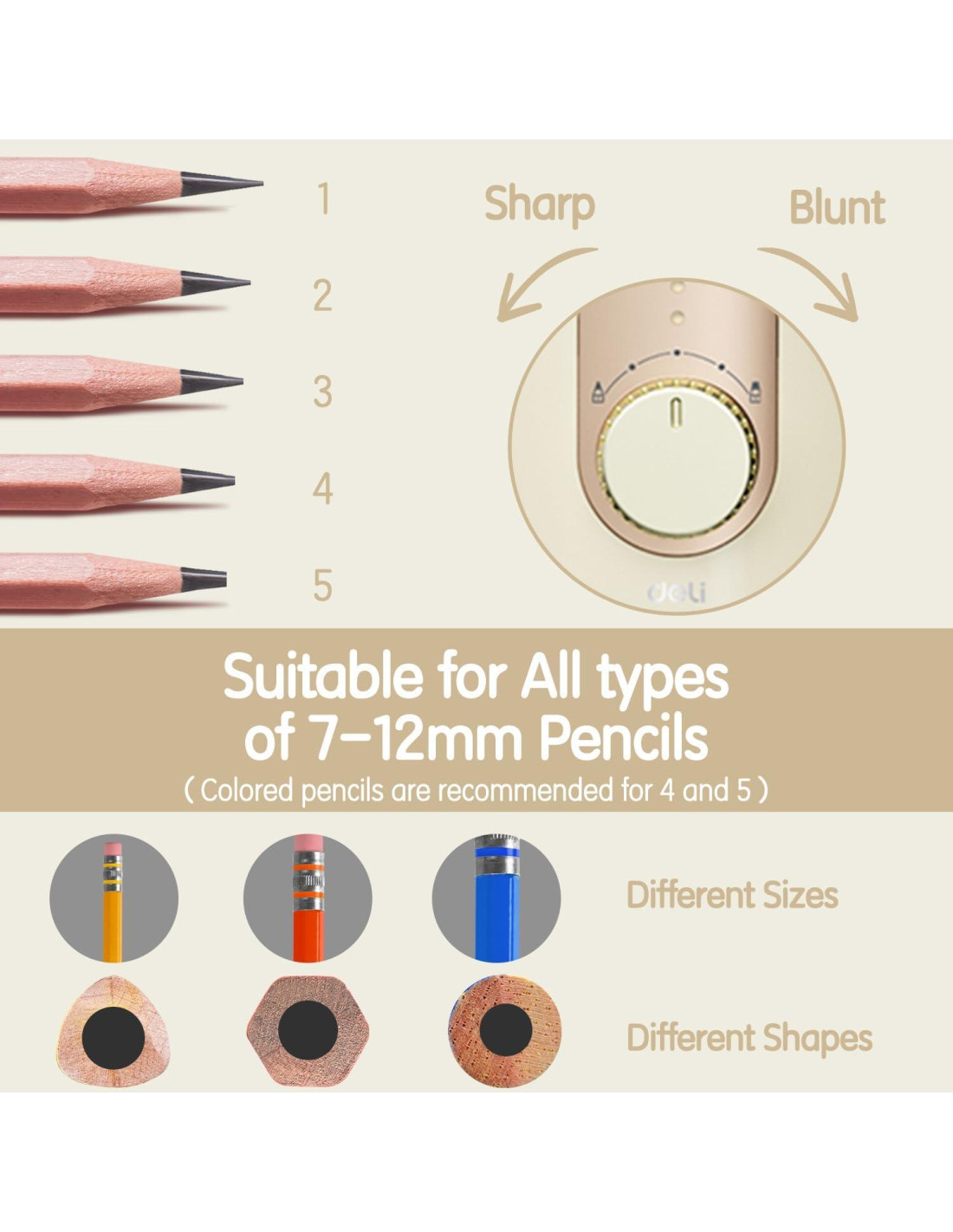- 5 OPCIONES DE AFILADO: Las 5 configuraciones cubren casi todas tus necesidades, incluyendo dibujar líneas finas y cubrir un área grande. La punta más roma es realmente gruesa tanto para los artistas expertos que sombrean como para los niños que son duros con los lápices. Nota: Se recomienda usar lápices de núcleo blando en la configuración de punta media o roma para evitar la rotura de la punta.