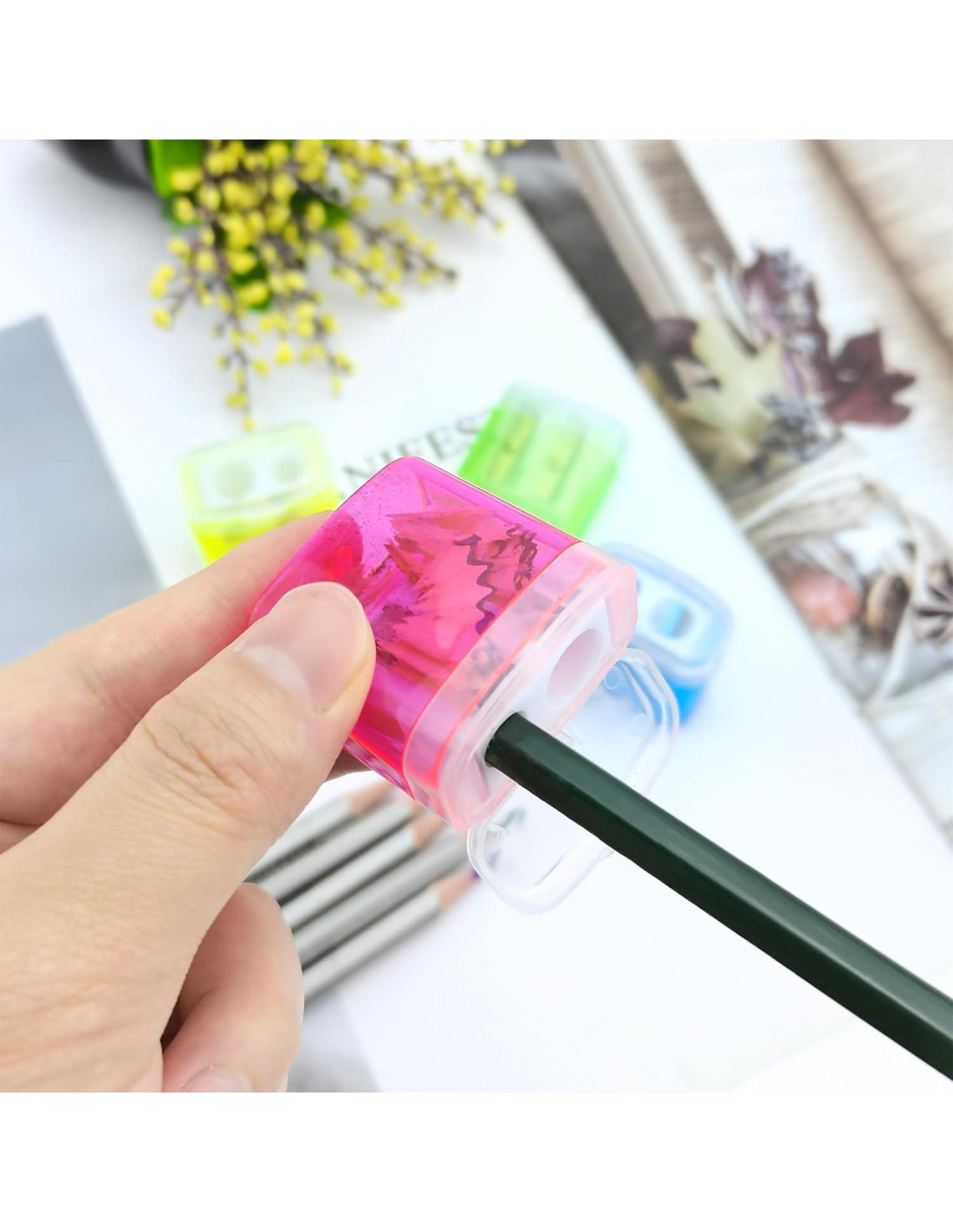 1.Diseño de doble agujero para acomodar lápices o crayones estándar y más grandes. Cuchillas resistentes y afiladas aseguran un afilado preciso y sin roturas para lápices de grafito, colorear y pastel. ¡Fácil de usar y no se pueden lastimar!