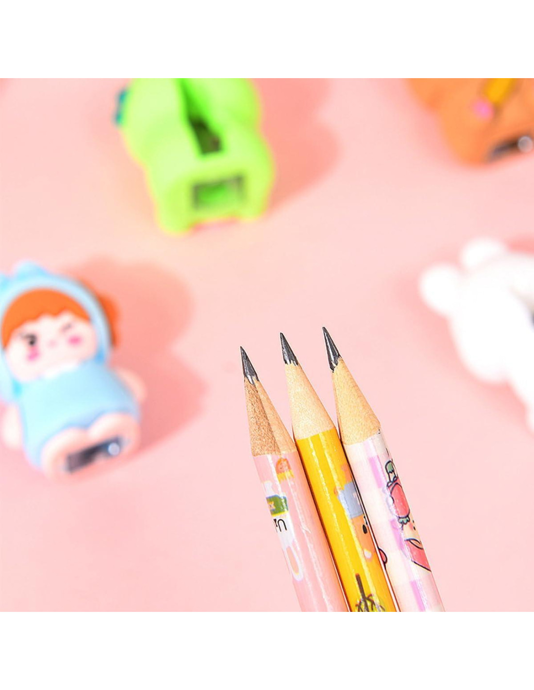 - [Lo que puedes obtener]: Dos sacapuntas con dos cajas transparentes que no solo tienen decoraciones lindas, sino que también son portátiles y adecuadas para tu uso diario y compartir con amigos