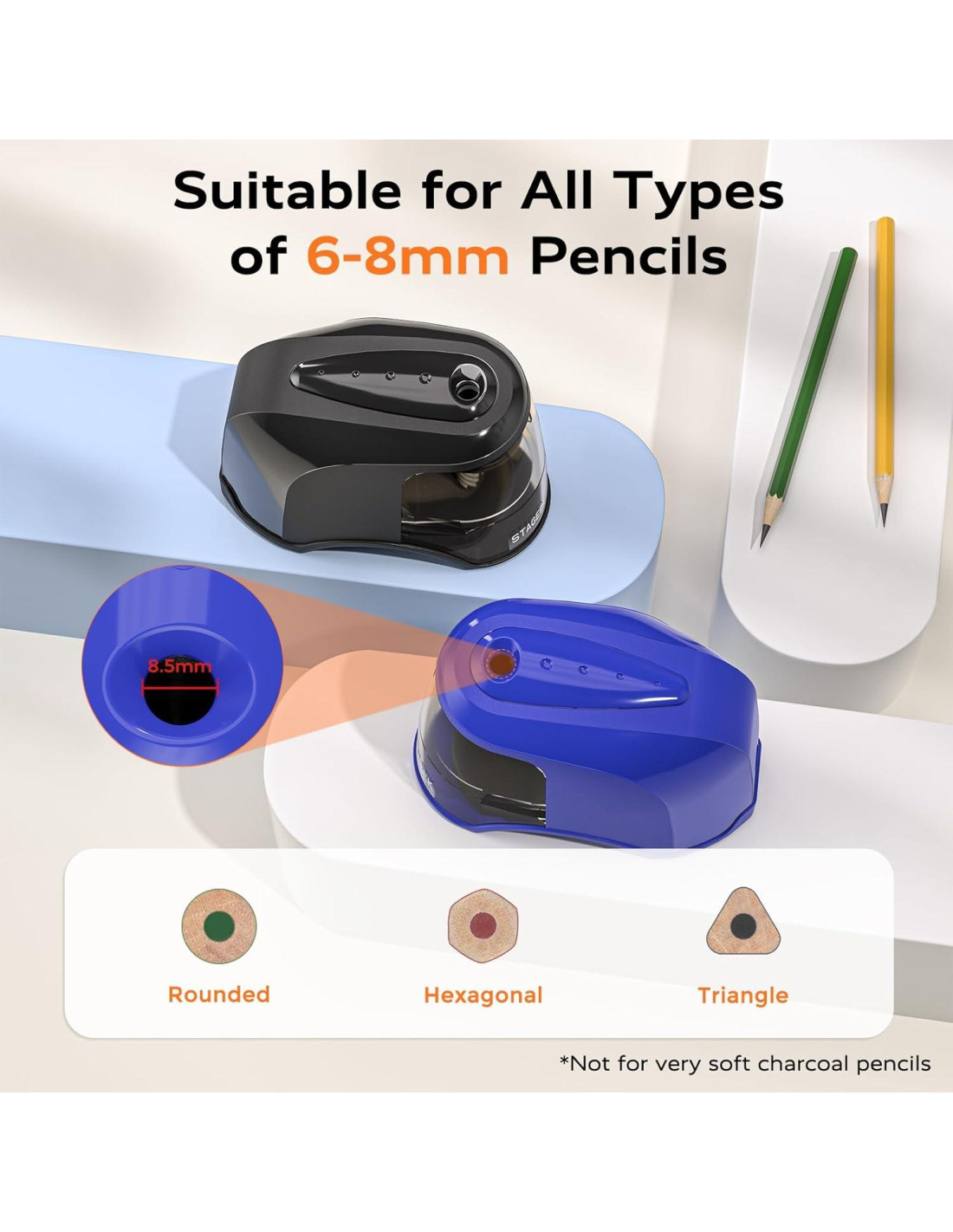 - Sacapuntas Perfecto para Regreso a Clases para Todos los Lápices: Este sacapuntas eléctrico funciona a la perfección con elementos esenciales escolares como lápices No.2, lápices de colores y lápices de arte estándar de 6-8mm. Ofrece un afilado suave y preciso cada vez - ¡un imprescindible para estudiantes (desde primaria hasta universidad), maestros, artistas y profesionales. La elección ideal para útiles escolares y uso en el aula en 2025!