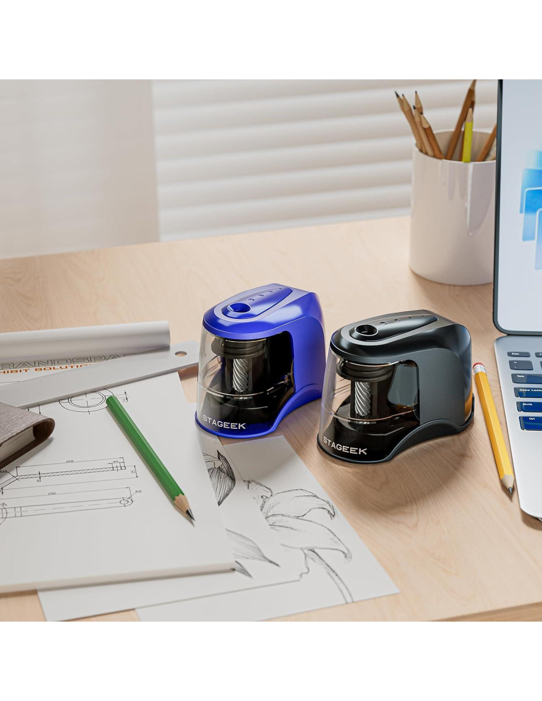- Regalo Perfecto para Regreso a Clases: Eleva el año escolar con el Sacapuntas Eléctrico Stageek! Este elegante sacapuntas de alta calidad combina un diseño elegante con una funcionalidad excepcional. Expertamente empaquetado, es la elección de regalo perfecta para estudiantes, maestros, artistas o profesionales. Además, la base de silicona antideslizante asegura un funcionamiento silencioso y estable, perfecto para trabajar concentrado en bibliotecas, salas de estudio o durante importantes sesiones de toma de notas.