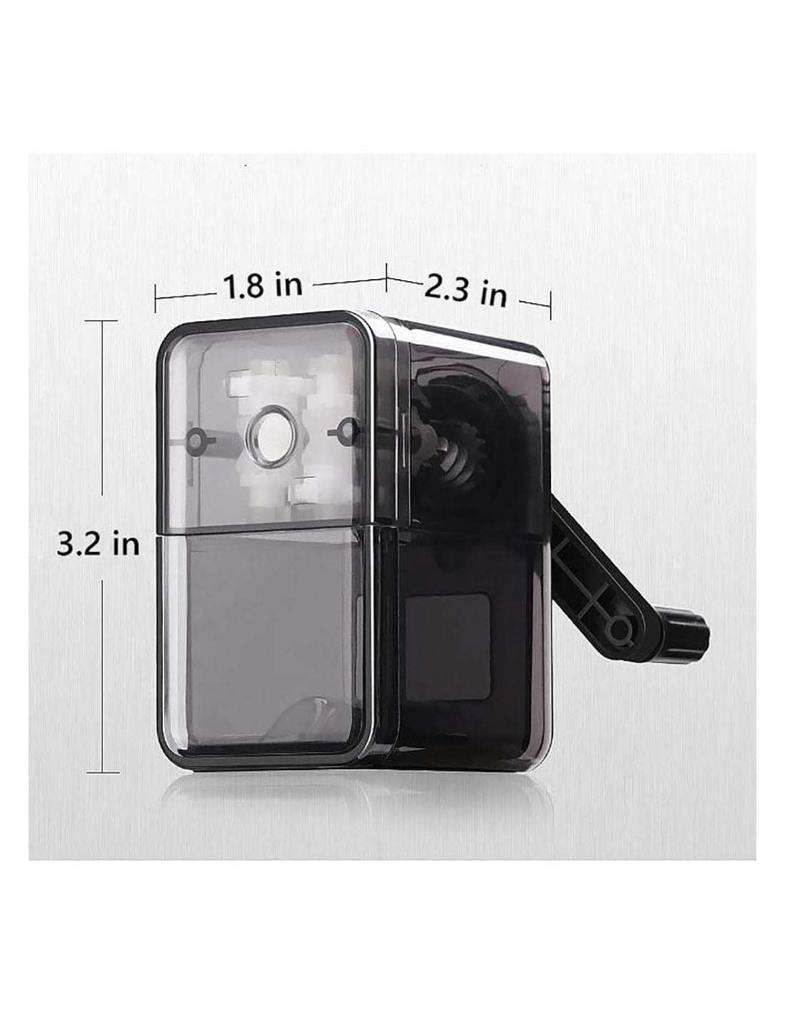 - Pequeño volumen: El volumen del sacapuntas es muy pequeño, puedes ponerlo en cualquier rincón del escritorio. 5.8 cm x 4.6 cm x 8.1 cm (incluyendo la manivela)