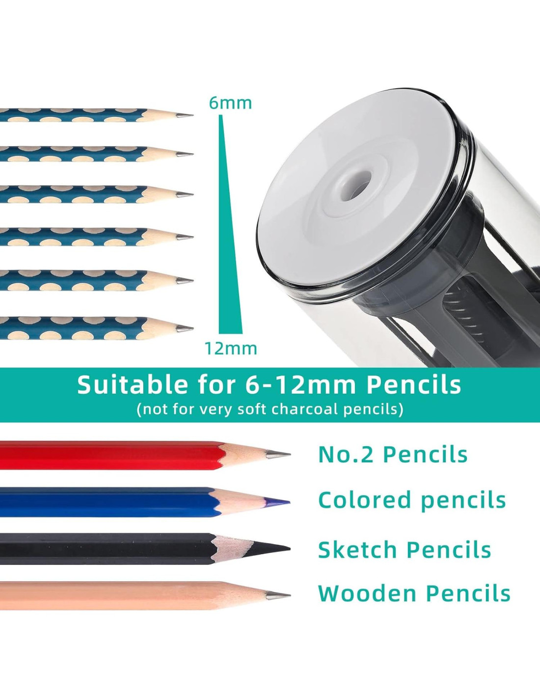 - Diseñado para Lápices de 6-12mm Este sacapuntas para lápices de colores es compatible con casi todos los lápices de 6-12mm, incluyendo No.2, colores, bocetos y lápices de madera. También acomoda varias formas de lápices, incluyendo redondos, triangulares y hexagonales.