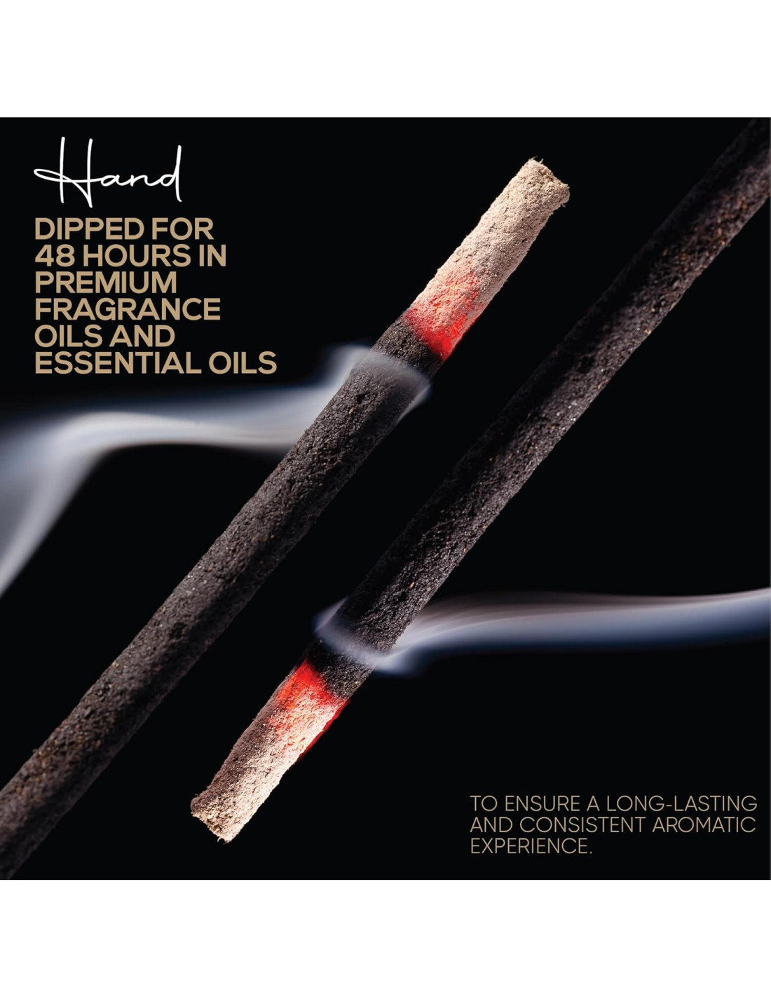 - HECHO EN LOS EE. UU. - Sumergido a mano diariamente utilizando aceites de fragancia de grado premium. 85 a 100 varitas por paquete - Cada varita mide 7'' pulgadas de largo y está hecha de madera de alta calidad. Sumergido a mano en aceites de fragancia de grado premium durante 48 horas. El tiempo de quema es aproximadamente de 30 a 45 minutos.