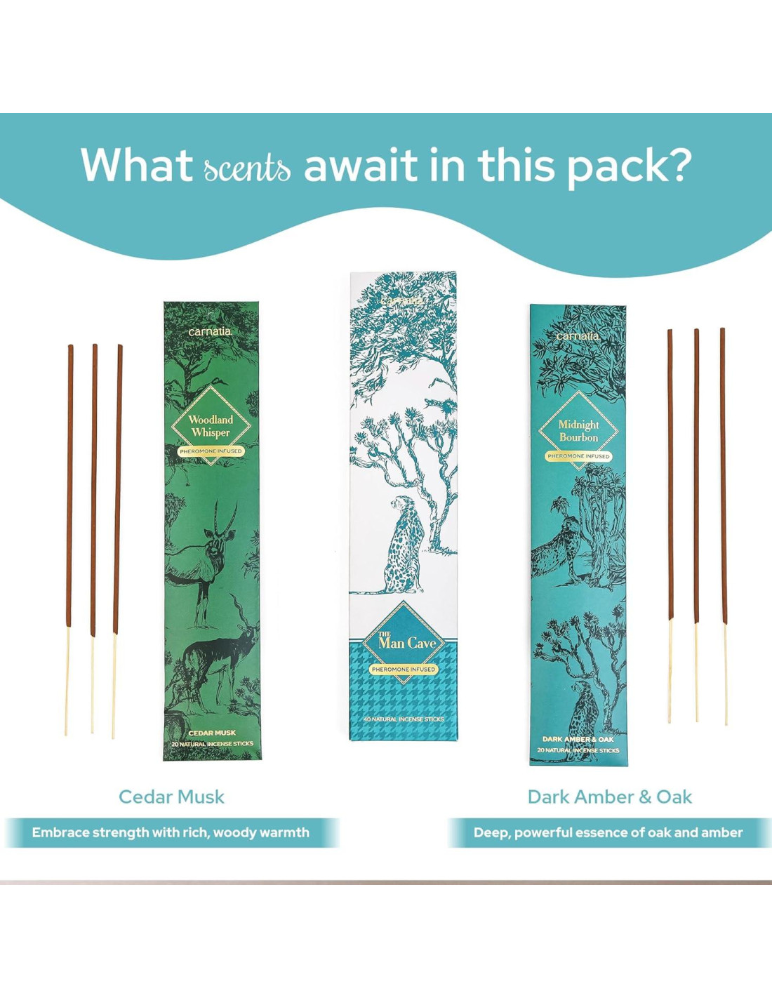 - Lujo Infundido con Feromonas - Infundidos con feromonas, estas únicas fragancias de incienso están diseñadas para realzar tu presencia, creando una atmósfera de atractivo y confianza, perfecta para el caballero moderno.