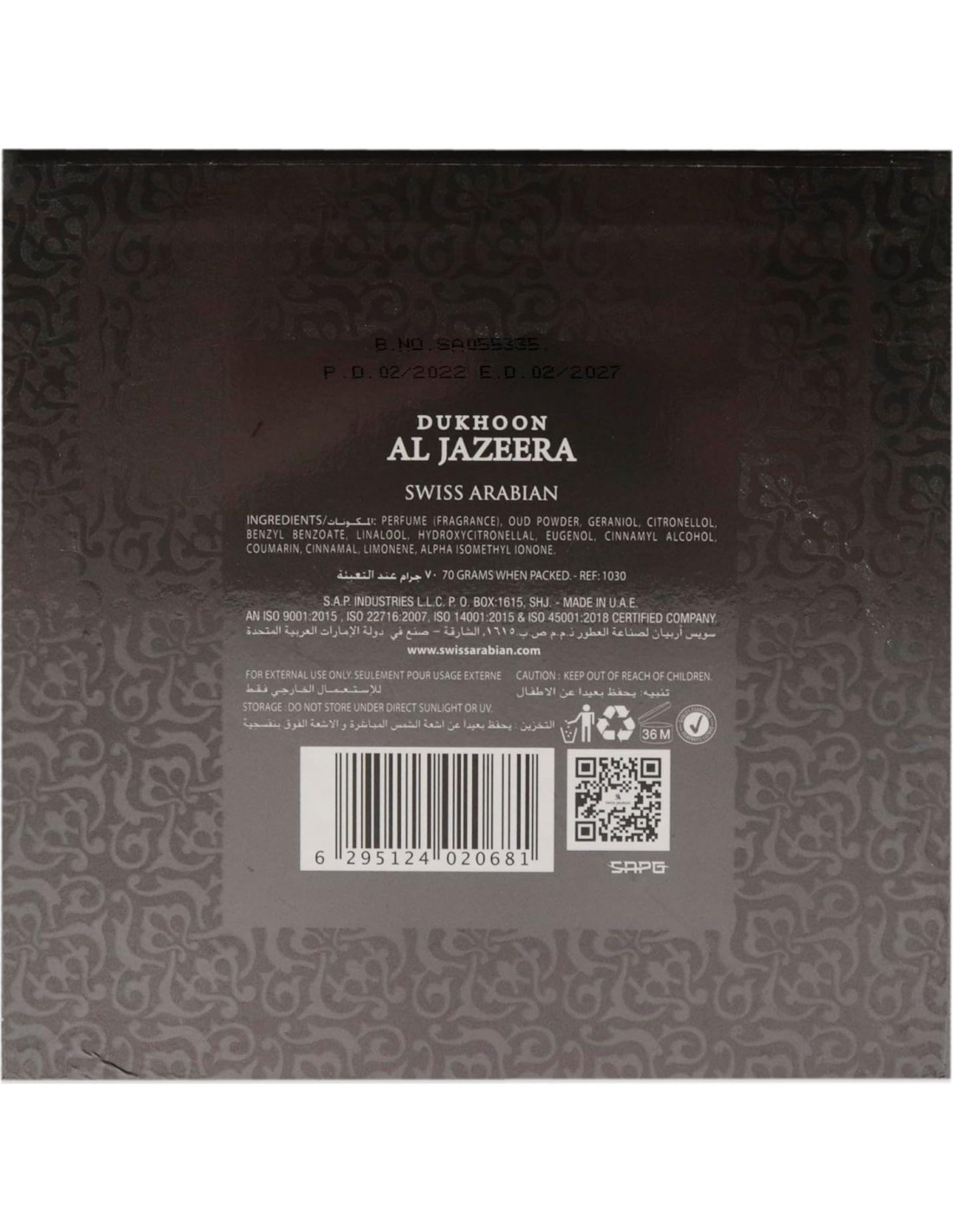 Dukhoon Al Jazeera flota en el aire, tentándote con rosas bañadas en oud precioso. El corazón de la fragancia te lleva a un oasis mágico donde especias y maderas se encuentran sin problemas en el medio. Pachulí, ámbar, sándalo y una capa de oud dorado completan el acto final y permanecen un tiempo en esta isla mágica. Nuestros mejores perfumistas han dirigido su atención al hogar para crear una colección de decoraciones olfativas sutiles que combinan una estética hermosa y chic con comodidad. Al igual que una persona que disfruta de su perfume distintivo, cada lugar ahora puede reclamar su alma olfativa distintiva con nuestra colección de fragancias de lujo para el hogar. En Swiss Arabian, nuestra experiencia y pasión, nuestro conocimiento de la perfumería árabe legendaria, la artesanía oriental y la elegancia contemporánea, se unen para crear fragancias que capturan tu imaginación y celebran tu verdadera esencia. La historia de Swiss Arabian es un cuento encantador que abarca más de 40 años. Este pionero en perfumes árabes fue fundado en el año 1974 por un visionario con una gran cantidad de conocimiento y una profunda pasión por la perfumería. Hoy, Swiss Arabian es el primer fabricante de perfumes en los EAU. Operamos cinco instalaciones de fabricación modernas distribuidas en un área de 15,329 m, produciendo más de 35 millones de perfumes anualmente y exportamos a más de 80 países.