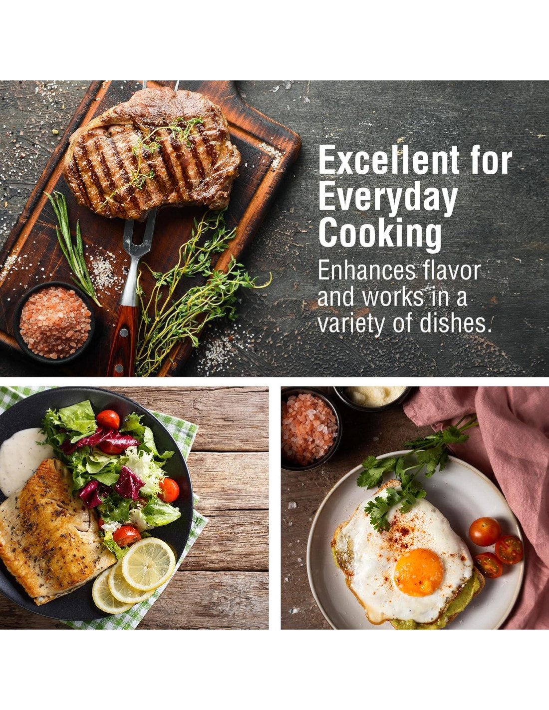 - USOS: Sazonar carnes a la parrilla, pescado, costillas, huevos, verduras, sopas, guisos, ensaladas de pasta, así como para hornear y se puede usar como sal de baño.