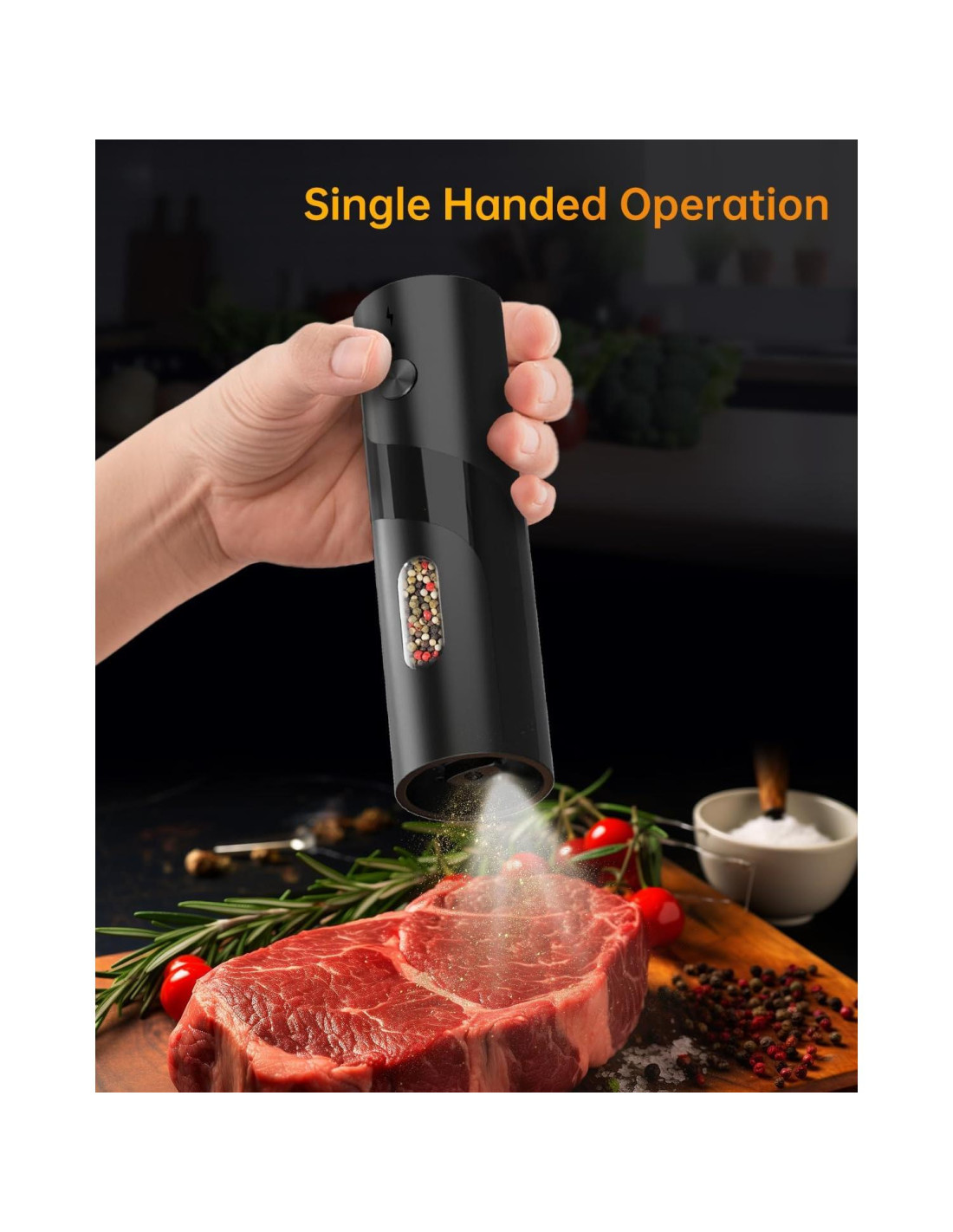 - Capacidad Grande Mejorada - Los molinillos de sal y pimienta eléctricos de 110 ml (3.38 oz) son un 30% más grandes que los modelos estándar de 70 ml, este molinillo sostiene más especias, reduciendo los rellenos. Una luz LED blanca incorporada se activa durante la molienda, permitiéndote monitorear el proceso en tiempo real