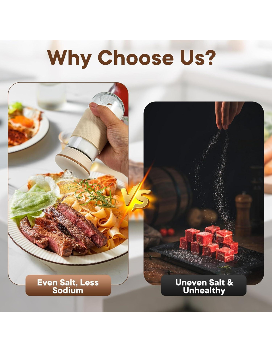 - Diseño sin desorden: El salero libera sal suavemente a través de su contenedor incorporado. Después de cada uso, el contenedor se cierra automáticamente para mantener la abertura limpia y prevenir derrames. Nuestros gadgets de cocina son adecuados para almacenar sal, azúcar, pimienta, chile en polvo, canela en polvo y más