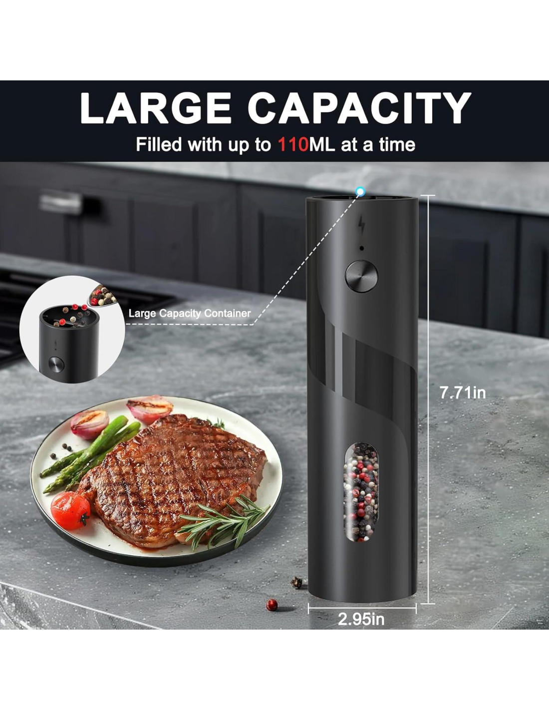 - Carga Rápida y Ultra Bajo Ruido: Nuestro juego de molinillos de sal y pimienta recargables cuenta con un puerto de carga Tipo-C para una carga fácil. ¡No más problemas con baterías AAA! Y el molinillo eléctrico de sal y pimienta opera por debajo de 68 decibelios, asegurando un ambiente de cocina pacífico. ¡Di adiós a la molienda ruidosa! Equipado con motores y cajas de engranajes de alta calidad.