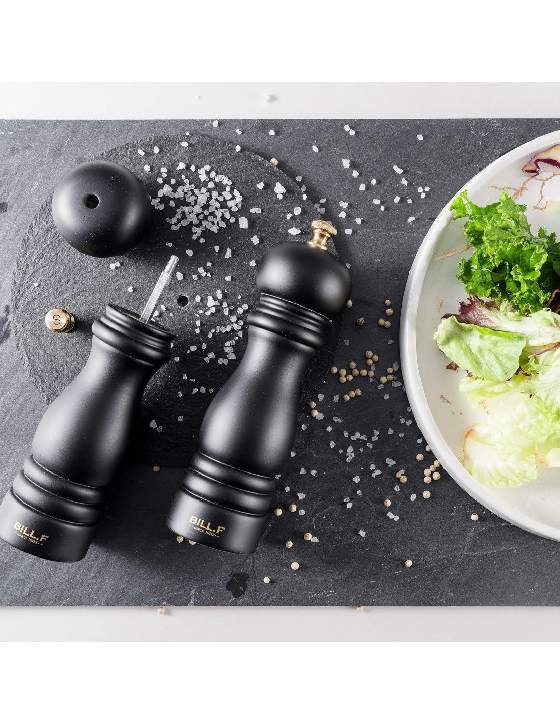 - [MADERA DE CALIDAD PREMIUM] El molinillo de sal y pimienta BILL.F utiliza madera de caucho natural, para asegurar que uses un molinillo de sal o pimienta seguro y duradero, es un esencial de cocina.