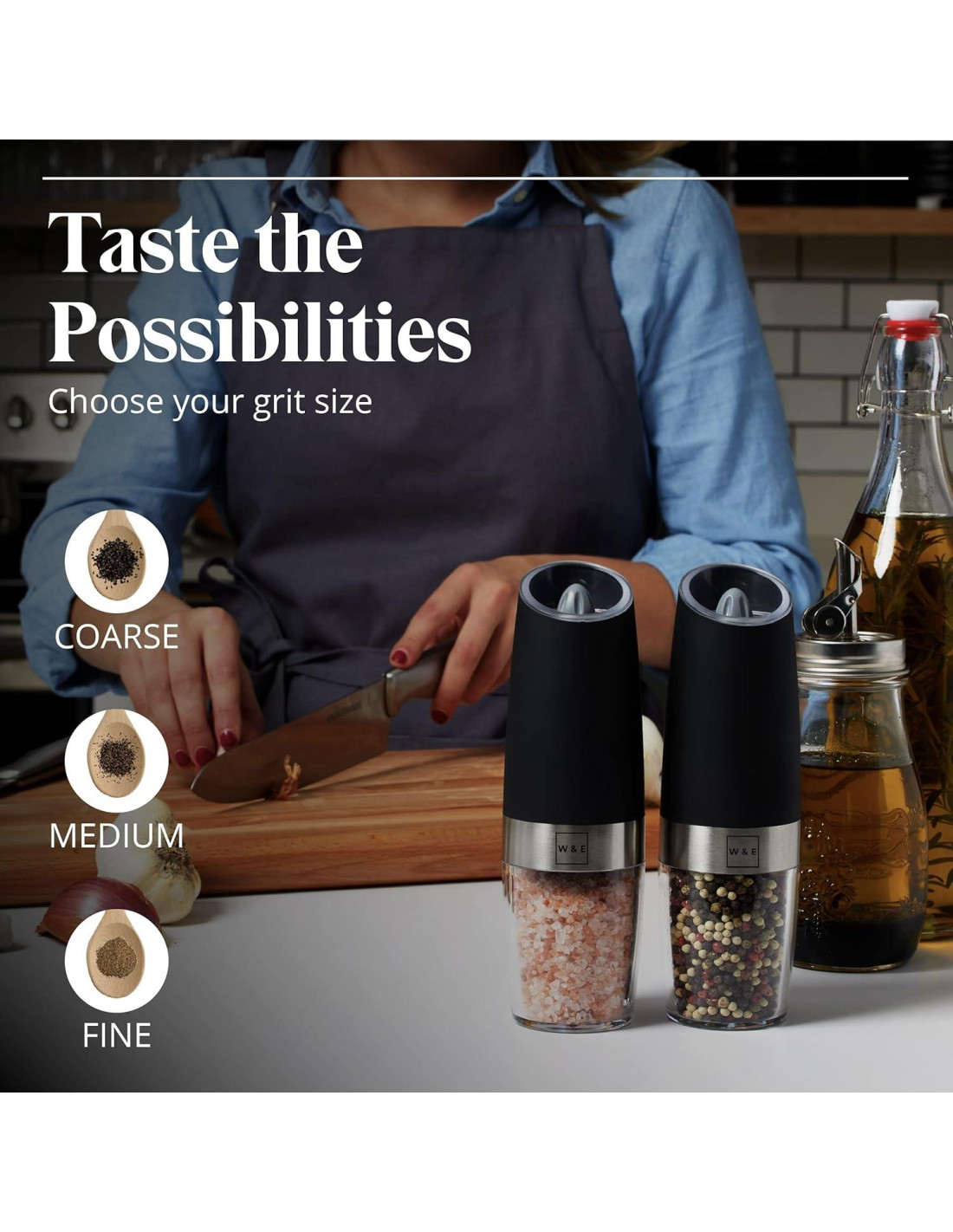 - PERSONALIZA TU MOLIDO - Estos molinillos eléctricos de sal y pimienta han sido diseñados con un molinillo ajustable para que puedas elegir el tamaño de grano entre grueso, medio y fino.
