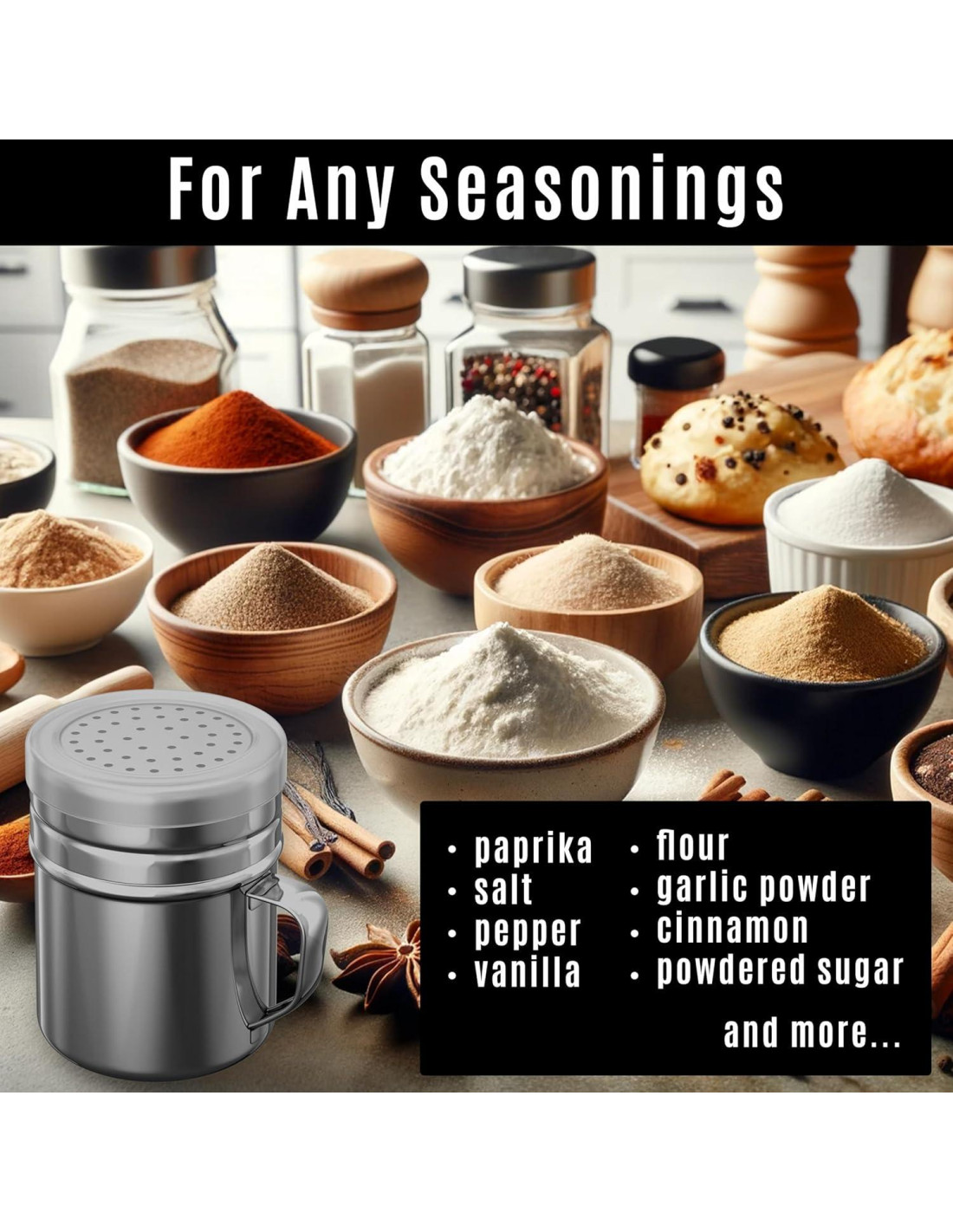 - Juego de cuatro sacudidores de acero inoxidable con tapas de rosca y cubiertas de plástico