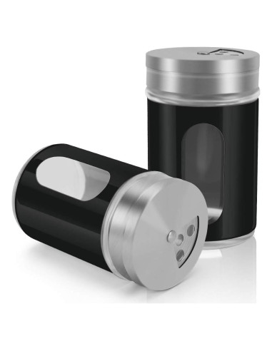 Accmor Shakers de Acero Inoxidable para Sal y Pimienta, Tarros de Vidrio de Acero Inoxidable, Dispensador de Especias con Tapa Rotativa, Contenedor de Cocina para Sazonar