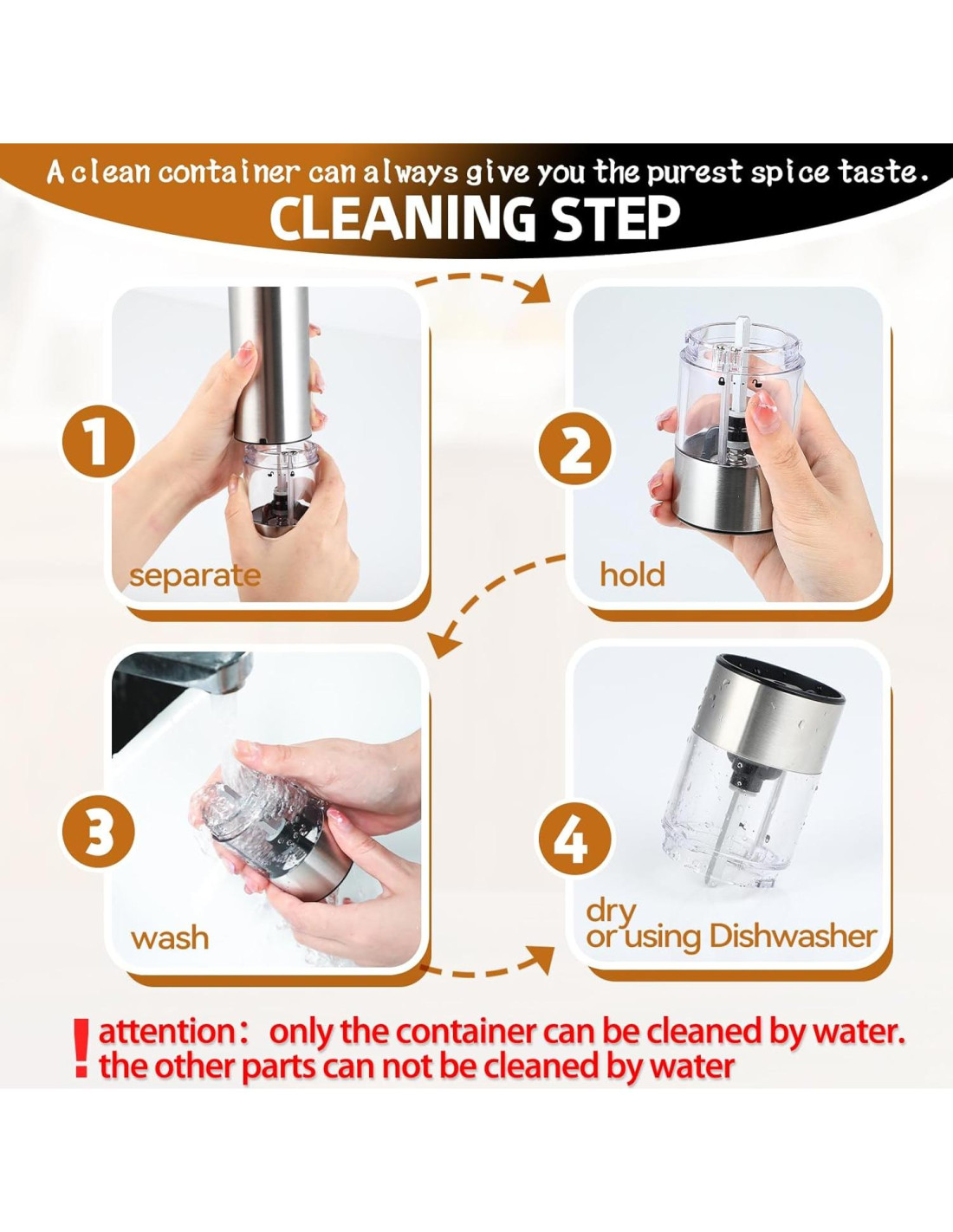 - Fácil limpieza para sabores no mezclados Nuestro molinillo de pimienta está diseñado con cámaras de almacenamiento lavables con agua para garantizar la higiene, prevenir olores persistentes y proporcionar una experiencia de molido fresca cada vez.