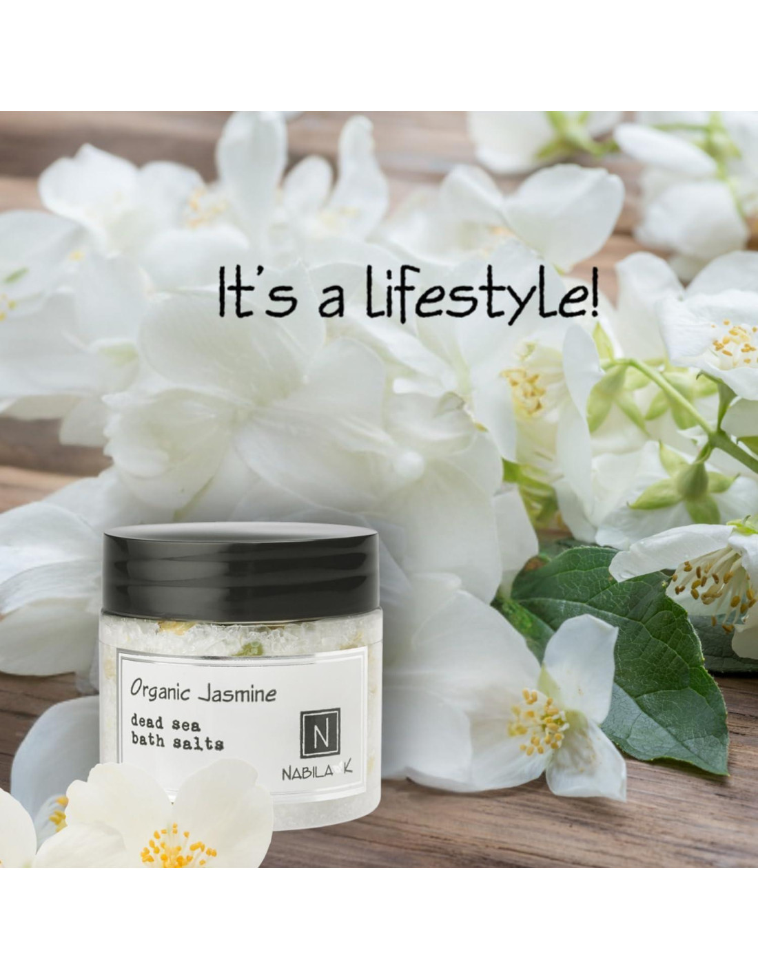 - Jazmín Orgánico: Nuestra sal de baño está hecha de brotes de jazmín orgánico y aceite esencial de jazmín para crear un aroma fragante.