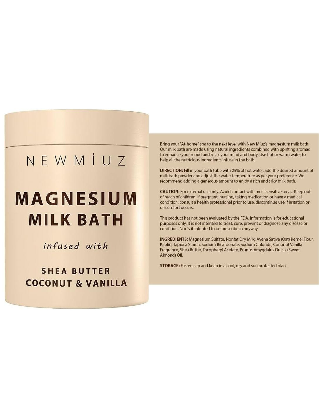 - Set de Regalo de Polvo de Leche de Baño de Magnesio 100% Natural para Mujeres - Infundido con aceites esenciales de aromaterapia como la vainilla que promueven la tranquilidad y el sueño profundo; un excelente regalo de alivio del estrés para tus seres queridos y uno de nuestros mejores productos de baño relajantes. Sal de magnesio de rápida absorción en tu piel sin ningún residuo graso o pegajoso. Tamaño (300 Gramos)