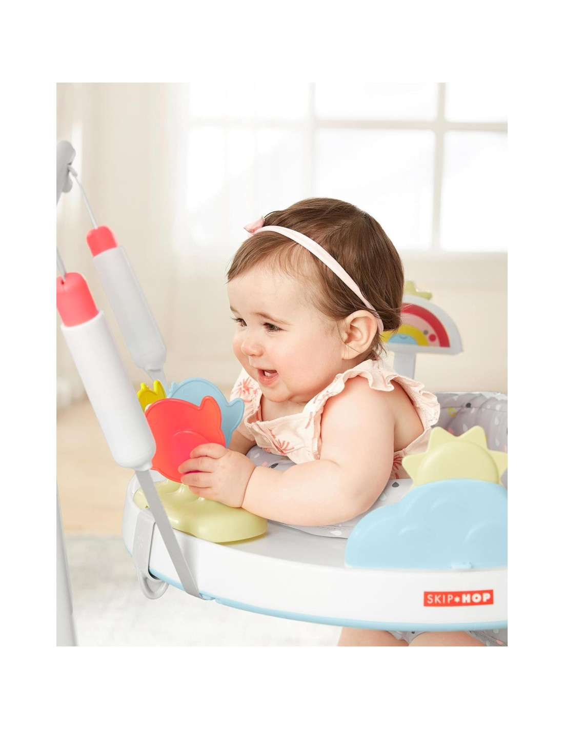 - Altura ajustable: El diseño de altura ajustable asegura que el centro de actividades crezca con tu bebé, proporcionando comodidad y disfrute óptimos a medida que se desarrollan. Coordina con la colección Nubes de Plata de Skip Hop