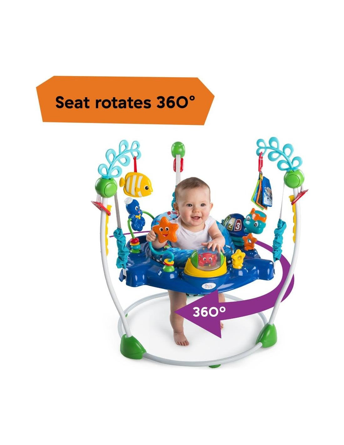 - El saltador cuenta con 4 alturas que se ajustan fácilmente para crecer con el bebé; el asiento gira 360 grados para rodear al bebé con un océano de aprendizaje y exploración; Dimensiones: 34 x 36.7 x 36.7 pulgadas (86,36 x 93,34 x 93,34 cm)