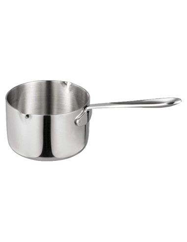 1. Antes del primer uso, lave la olla en agua caliente con jabón. Enjuague y seque con una toalla. 2. No precaliente su olla vacía. Esto puede quemar el fondo de sus sartenes. 3. No deje que los líquidos se evaporen, esto puede causar daños severos a la olla. 4. El mango corto puede calentarse durante la cocción. Use un guante de cocina o un guante resistente al calor para evitar quemaduras. 5. Evite que se acumule costra de comida en la olla limpiando después de cada uso y evitando que la comida se queme. 6. Este producto no es apto para microondas. Interior de acero inoxidable 18/10; exterior de acero inoxidable magnético (el uso de horno electromagnético requiere magnético); una capa de núcleo de aluminio puro intercalada entre dos capas de acero inoxidable. La construcción de 3 capas asegura una distribución y almacenamiento óptimos del calor. Apto para lavavajillas. Esta cacerola para derretir mantequilla es adecuada para estufas de inducción, gas o eléctricas. Tenga en cuenta que el diámetro interno de su estufa de inducción debe ser < 10cm para un rendimiento óptimo de inducción. Diseño de doble vertedor para uso con la mano derecha e izquierda, su pequeño vertedor solo requiere un vertido menos apresurado. El mango presenta un agujero en el extremo para colgar opcionalmente de su estante para ollas para almacenamiento.