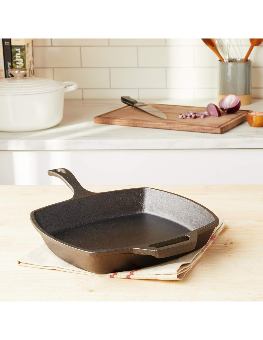- Nombre del modelo: Jim Beam Sartén Cuadrada de Hierro Fundido Pre Sazonada de 10.5" (26.67 cm) para Parrilla, Gas, Horno, Eléctrico