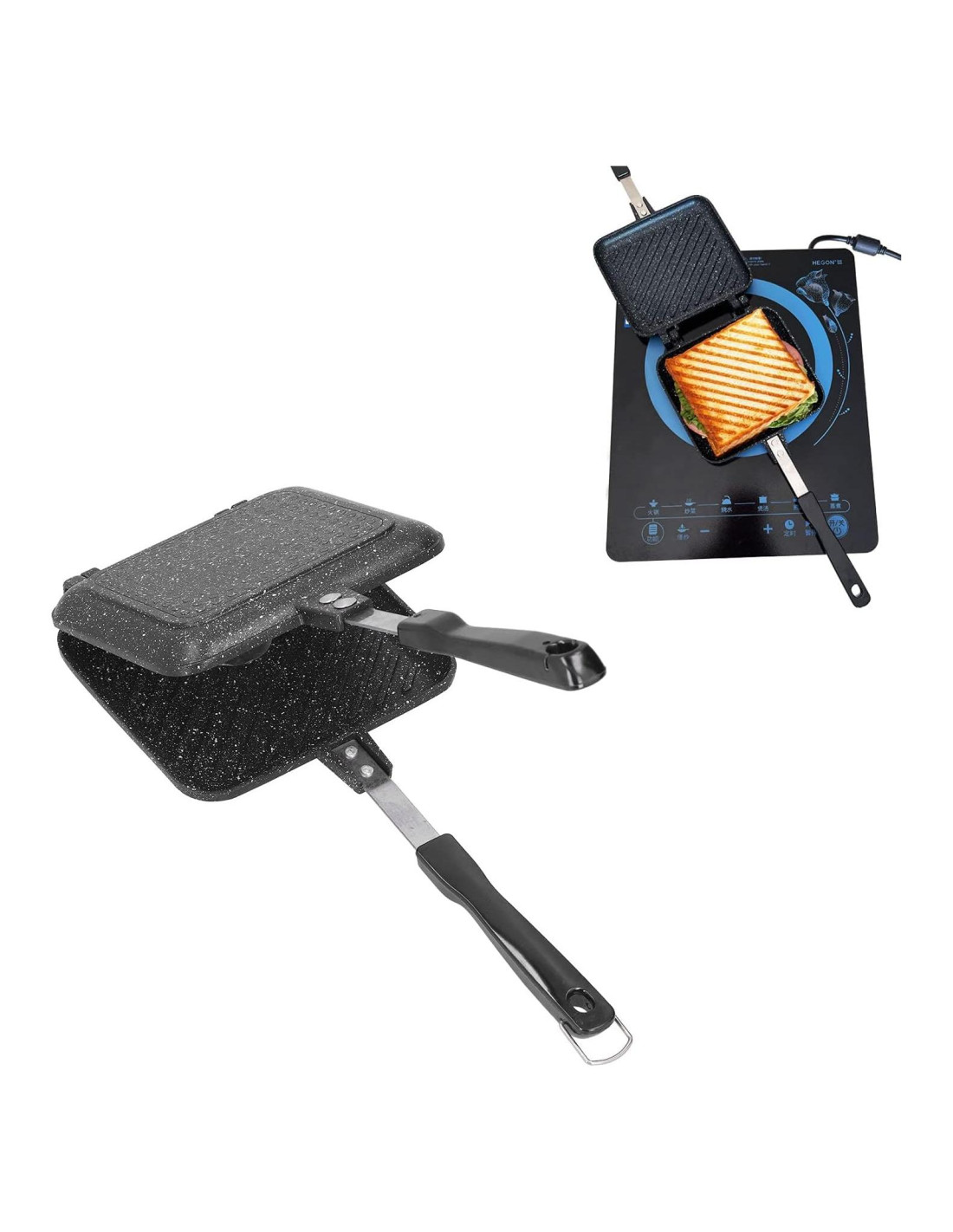 - COCINA RÁPIDA: Esta sartén es antiadherente y se puede usar para satisfacer sus diversas necesidades de cocina. Con esta sartén para sándwiches, se pueden hacer sándwiches, waffles, postres, filetes en minutos, la olla para sándwiches portátil y antiadherente puede ahorrar su tiempo y energía