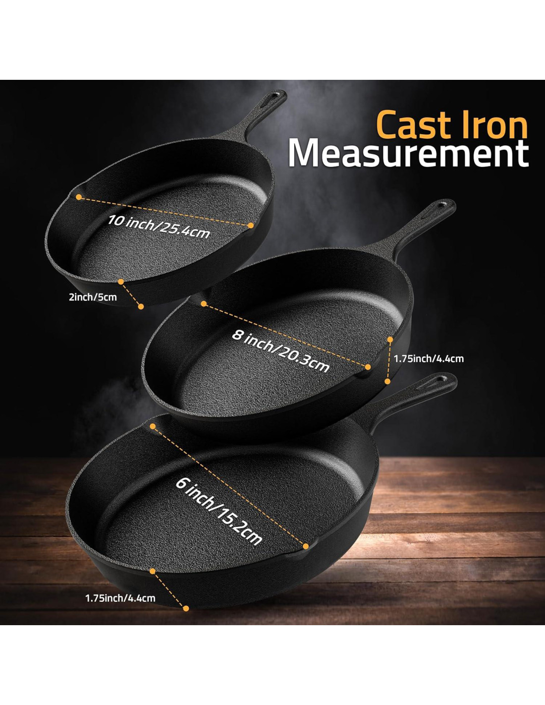 - Fácil Cuidado: Se recomienda frotar la sartén con una ligera capa de aceite vegetal después de cada lavado. Permita que la sartén de hierro fundido se enfríe completamente antes de lavarla en agua jabonosa caliente con una esponja y un jabón de lavar platos regular. No es apta para lavavajillas.