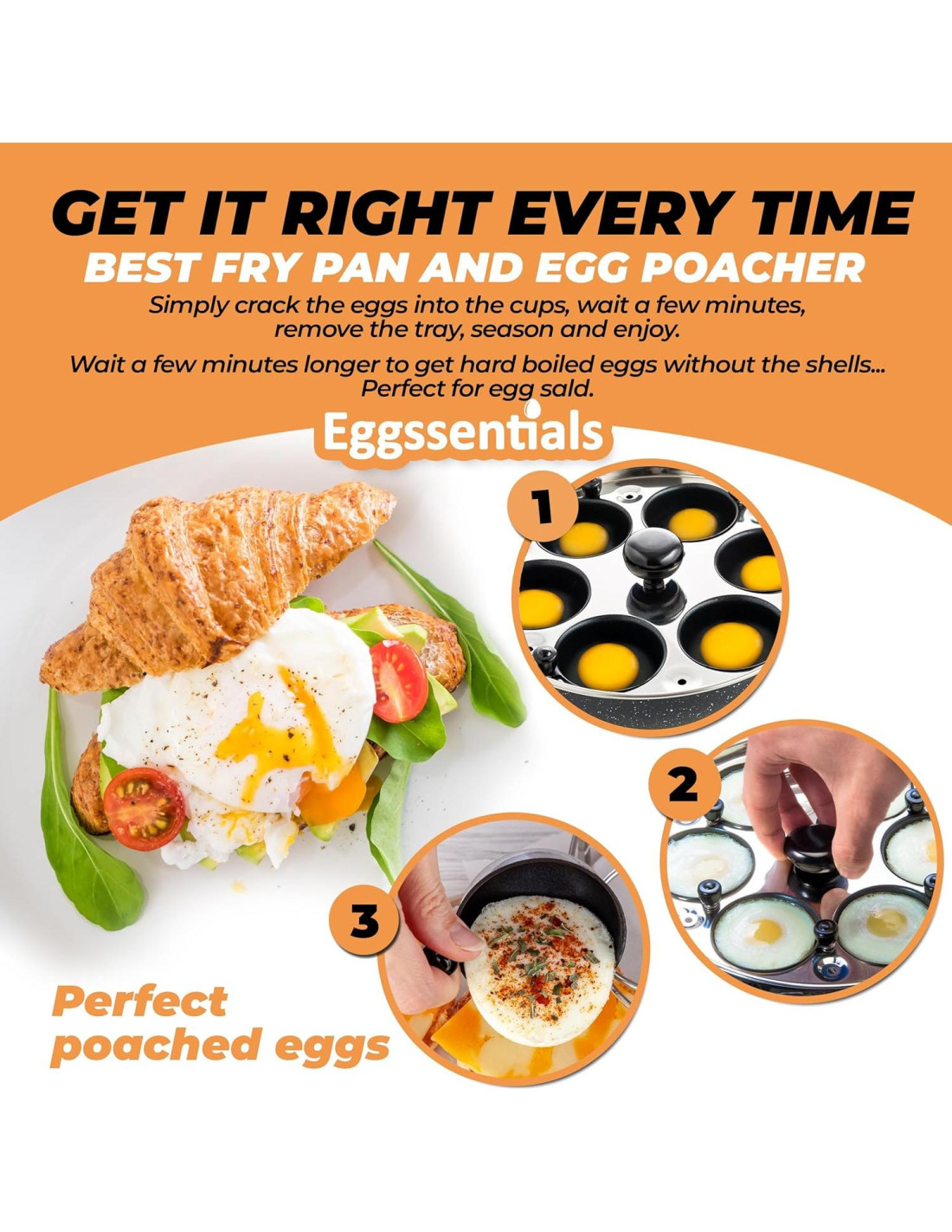 - DOS EN UNO - SARTÉN PARA POCHAR Y FRITURA - Sartén deluxe libre de PFOA con tazas antiadherentes de doble recubrimiento que sostienen fácilmente huevos XL y jumbo. Además, una sartén de granito antiadherente que cuenta con un recubrimiento resistente a rayones que es muy fácil de limpiar. Desde Huevos Benedict a Huevos Sardou, huevos duros sin cáscara, trocitos de huevo, omelets y todos los platos de huevo con esta sartén para huevos. Disfruta de un desayuno delicioso y saludable sin complicaciones. Esta sartén para cocinar huevos es para los amantes de los huevos con opciones de cocción TODO EN UNO.