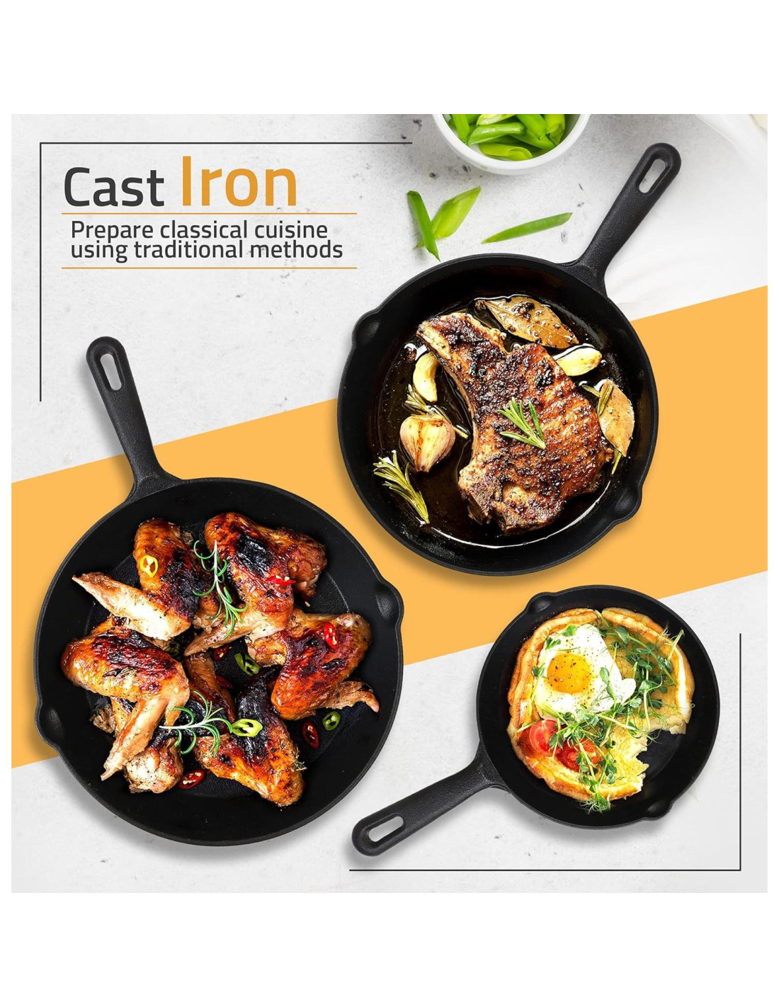 - Retención de Calor Superior: La Sartén de Hierro Fundido distribuye el calor de manera uniforme en la superficie para resultados de cocción perfectos. Ideal para sellar, saltear, freír, hornear y más.