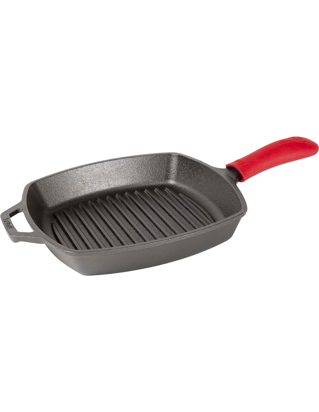 - Paquete combinado: sartén grill cuadrada de 26.67 cm y soporte de mango de silicona roja