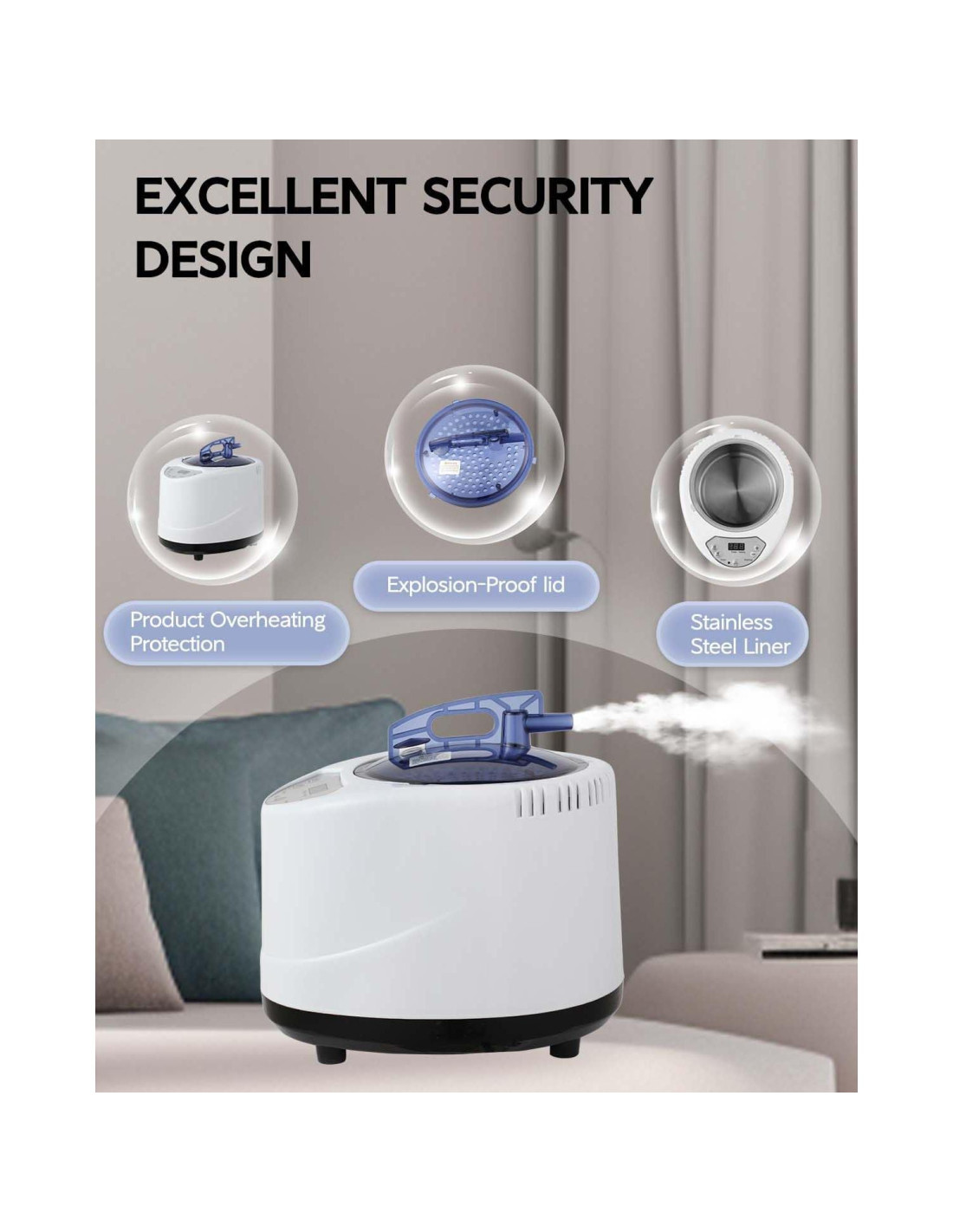 - [Control Remoto] Máquina de spa en casa para desintoxicación del cuerpo. 9 niveles de calefacción ajustables según tu preferencia; configuración de tiempo de 1-99 minutos; La olla de vapor portátil de 2.4 L puede usarse durante 60 minutos con agua llena. Se calienta rápidamente. Ajusta la temperatura y el tiempo fácilmente usando un control remoto.