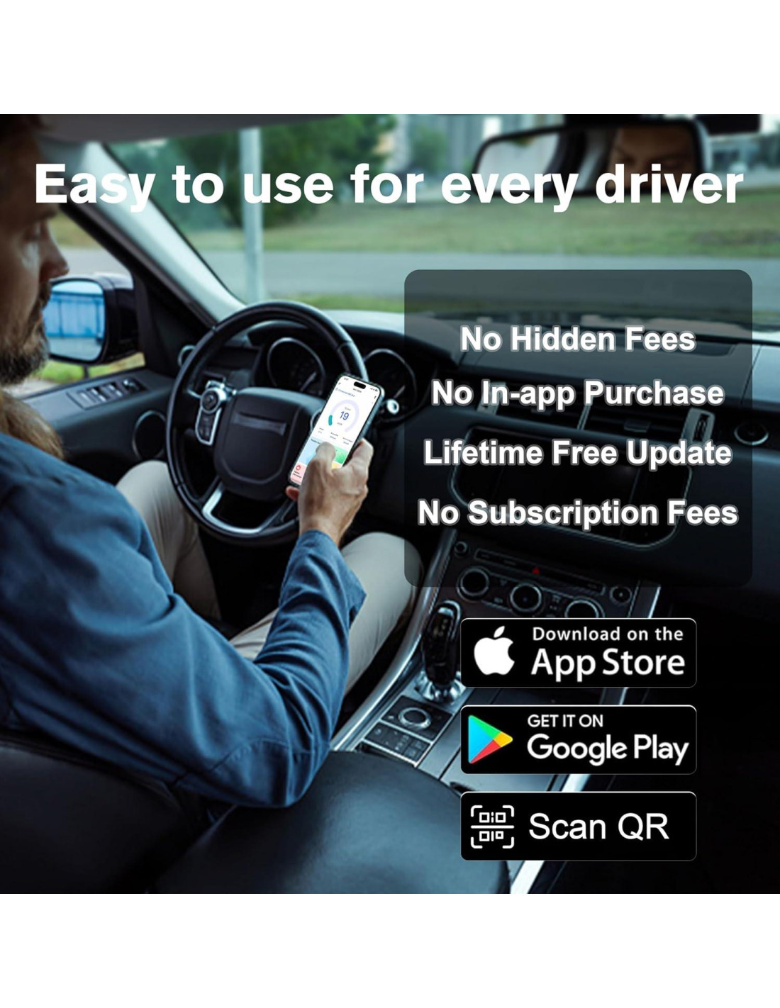 - Bluetooth 5.4 + Aplicación Gratuita: Conéctate de forma inalámbrica a través de Bluetooth 5.4. Incluye una aplicación gratuita para Android e iOS. Fácil de configurar: solo conecta, empareja y escanea. Diagnósticos estables, rápidos y sin cables.