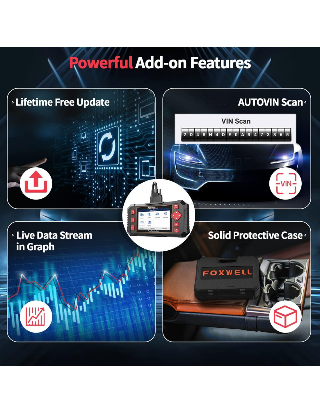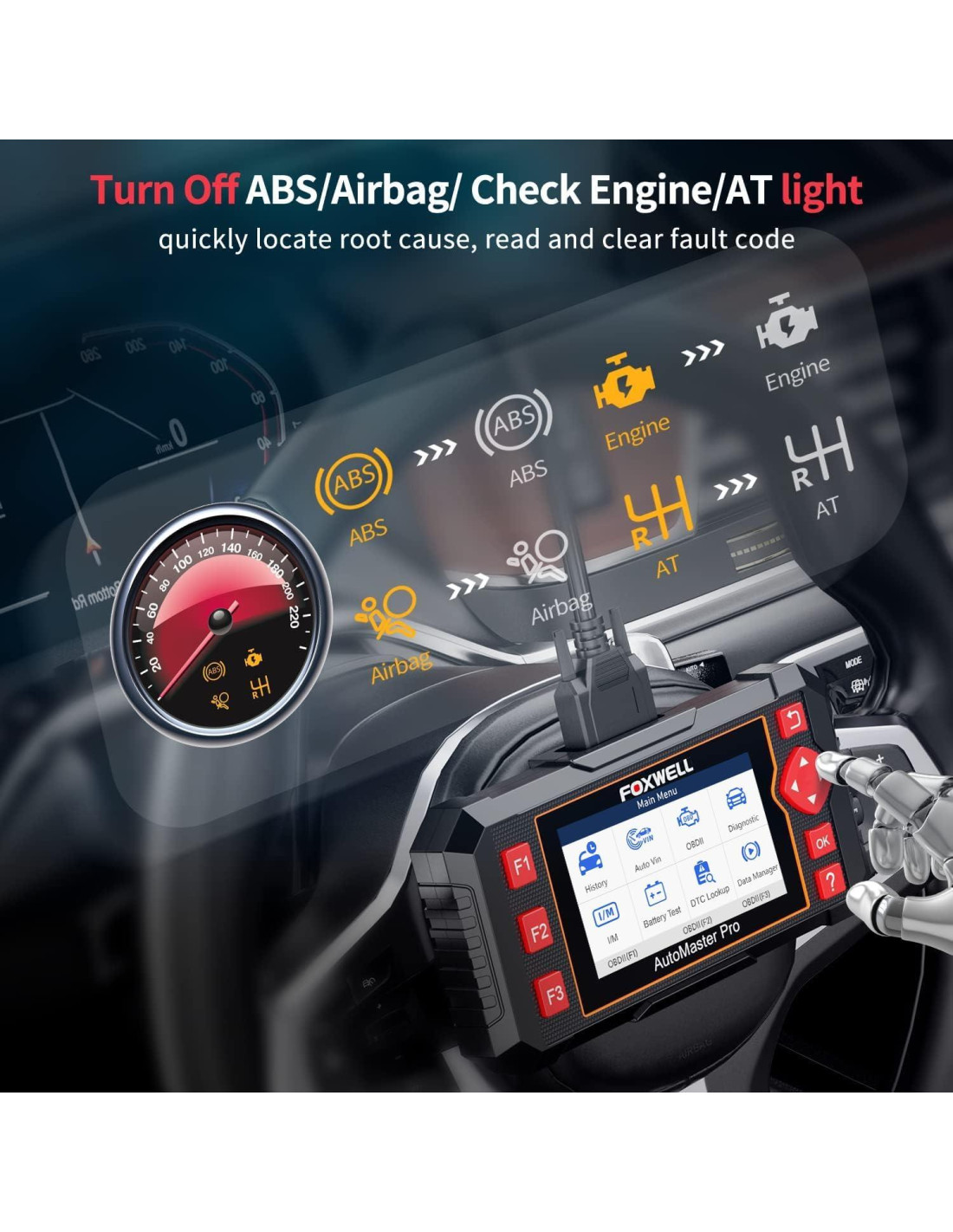 - [Asequible] + [Monitor de Salud del Coche Confiable] ¿Te confunde qué sucede cuando la luz de advertencia de ABS/SRS/transmisión/luz de motor parpadea? En lugar de llevar tus coches al concesionario, este escáner FOXWELL te ayudará a realizar un escaneo y detección exhaustiva para tus coches y localizar la raíz del problema. Apagará la luz de advertencia del coche después de que se solucione el problema. TIPS: Los datos de choque/collision del airbag NO pueden ser borrados incluso si reemplazas el nuevo airbag.