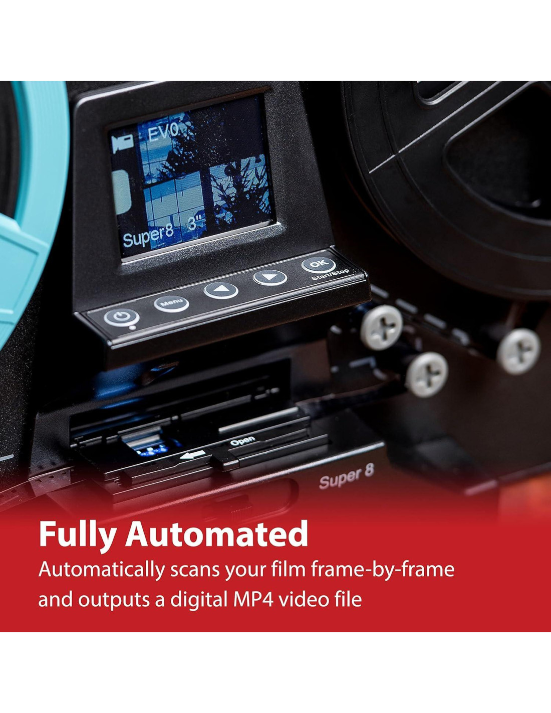 - DEVUELVE LOS RECUERDOS - Convierte automáticamente tus carretes de película super 8/8mm de 3", 5" y 7" en archivos digitales MP4 con solo presionar un botón. Escanea video solamente, sin sonido.