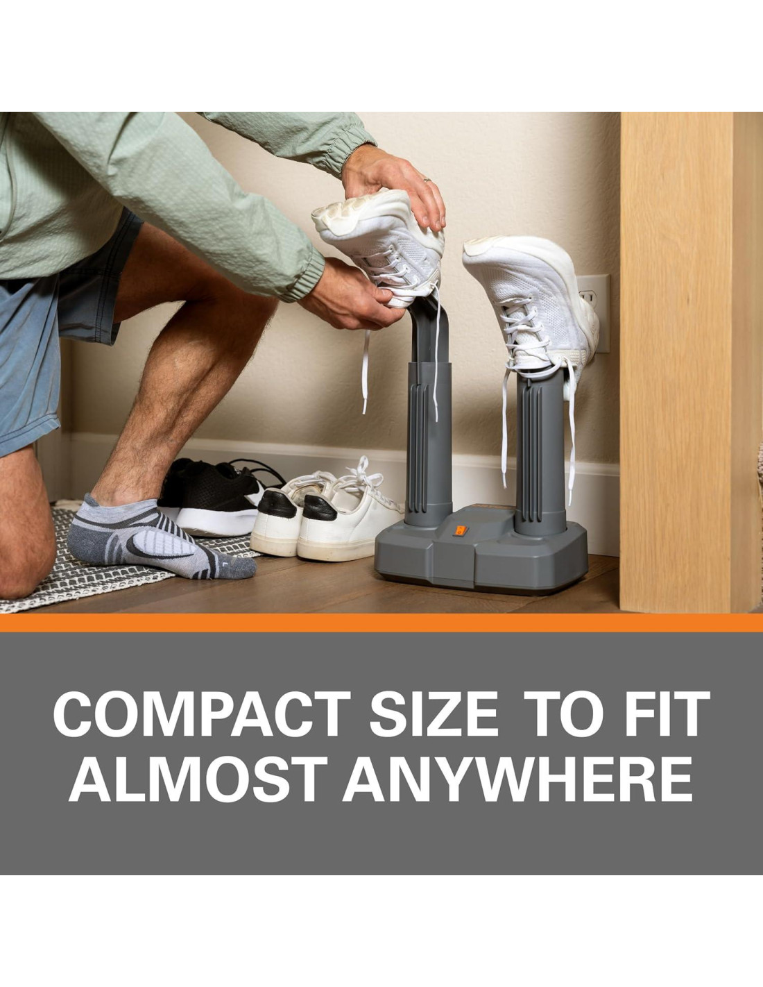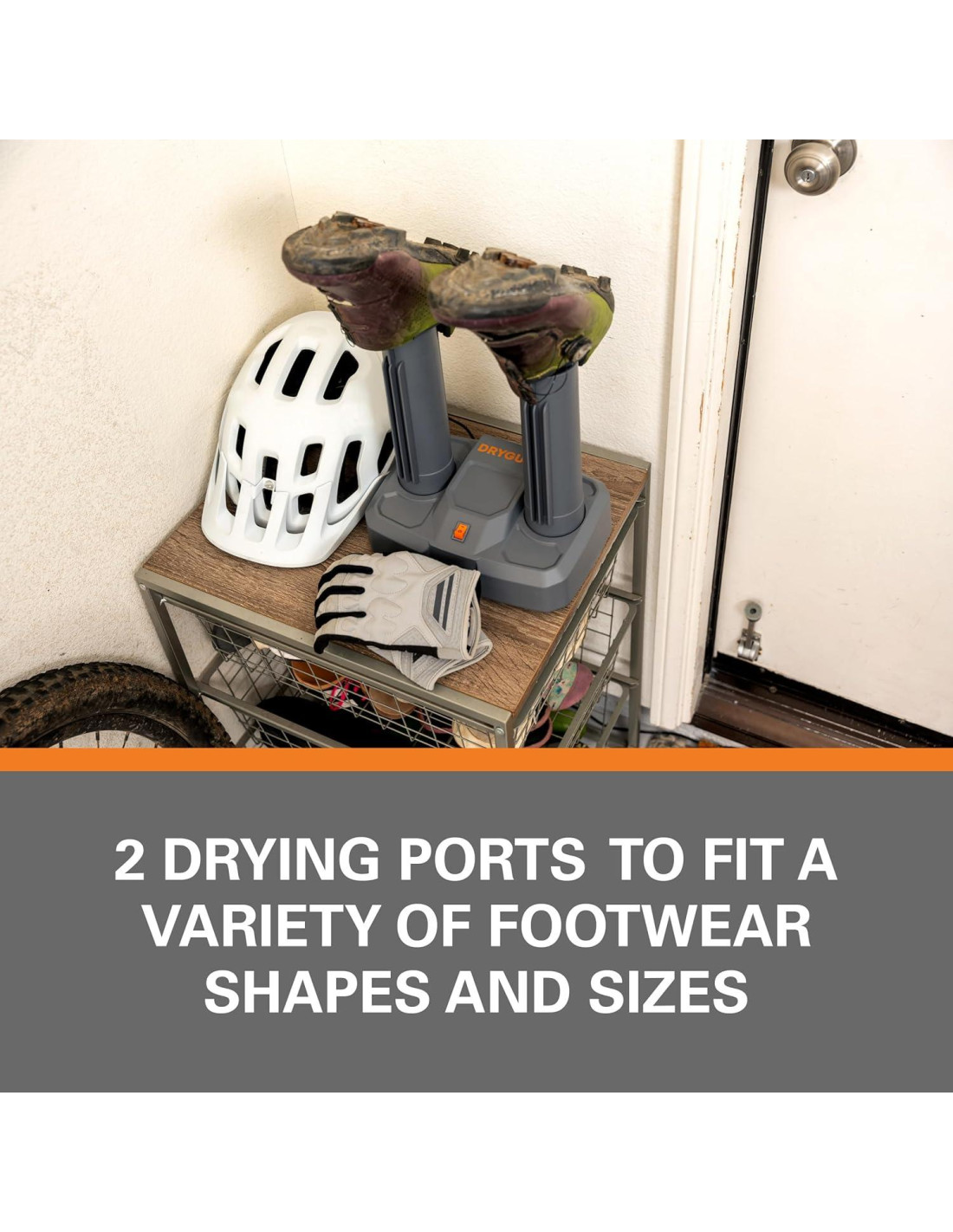 - PUERTOS DE SECADO UNIVERSALES: Cuenta con dos puertos diseñados para adaptarse a varios tipos y tamaños de calzado, desde botas de senderismo hasta tacos.