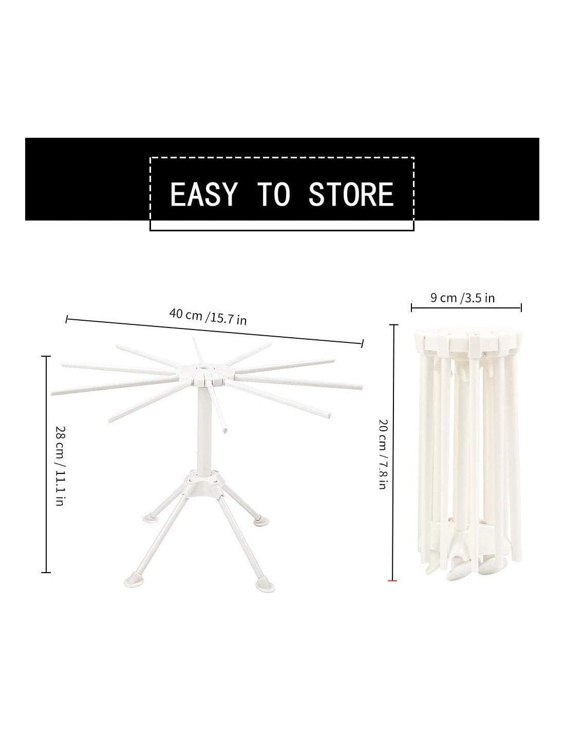 - Diseño Perfecto: 4 patas de goma hacen que el soporte para secar fideos sea más estable, y 10 brazos alargados pueden colgar más fideos. No se necesitan tornillos ni herramientas para ensamblar y desensamblar, solo ajuste manual, incluso un niño puede hacerlo.