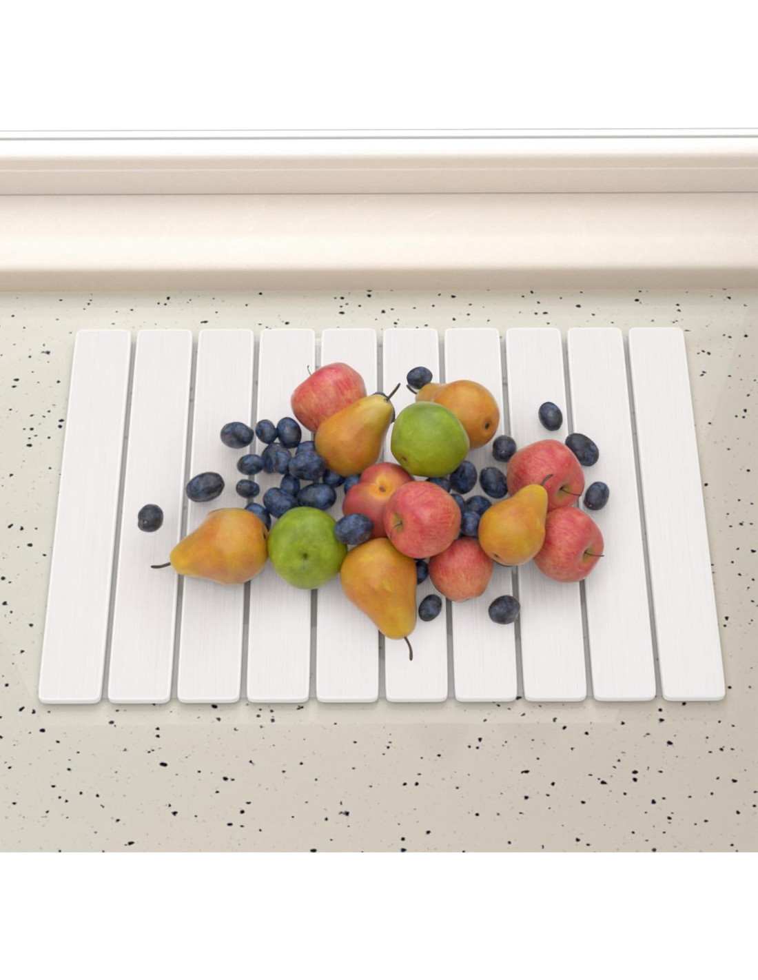 - Diseño Extra Grande y Plegable Superficie de 60cm(L)x39cm(W) que se adapta a platos grandes, ollas y productos; se pliega plano para un fácil almacenamiento en cajones o debajo de los fregaderos.