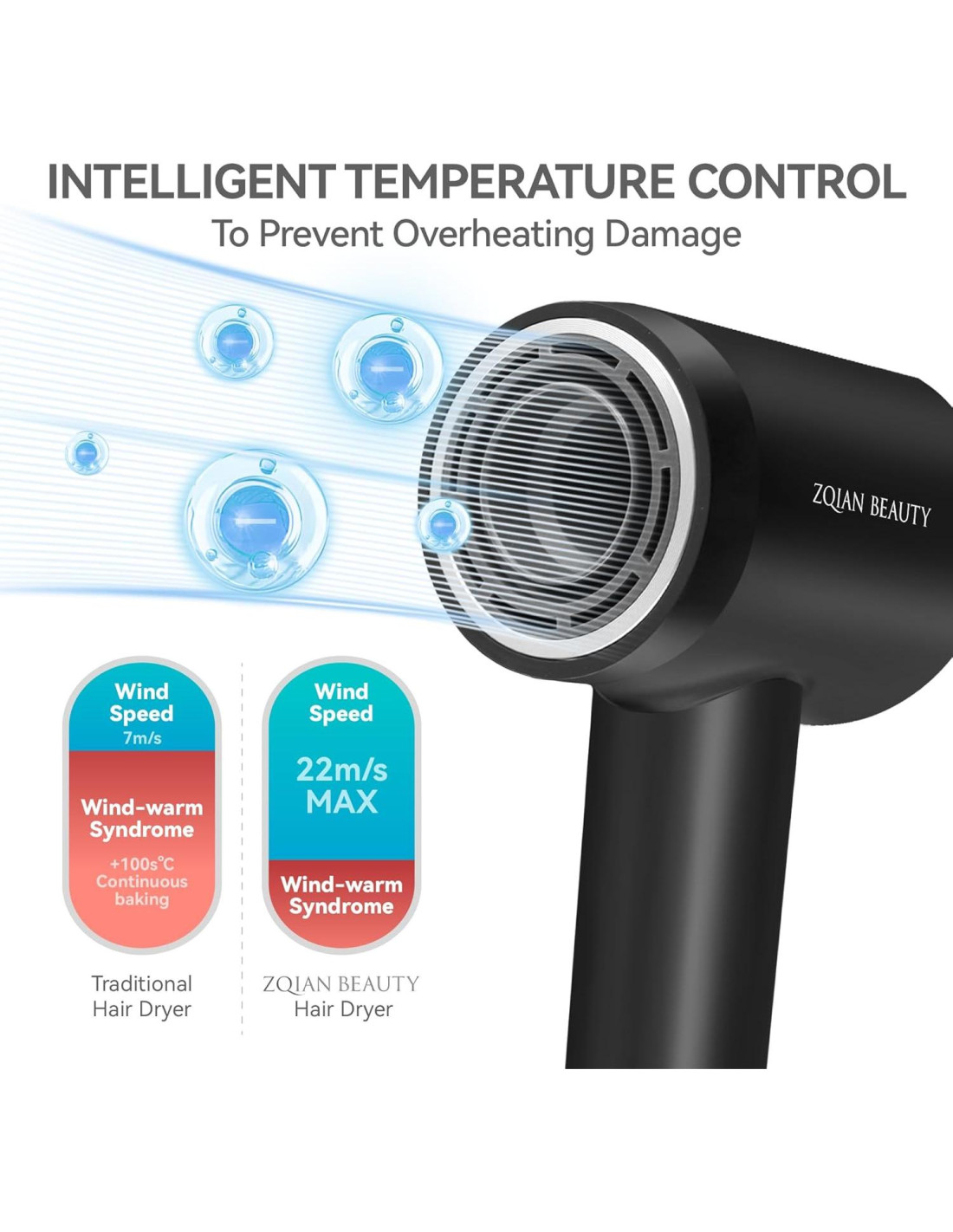 - [Motor potente premium para un secado más rápido] Este secador de pelo profesional cuenta con un motor sin escobillas de alta velocidad que gira a hasta 110,000 RPM, mientras que los ductos de aire están diseñados para ser más abiertos, con alto flujo de aire y velocidades de aire rápidas. El potente flujo de aire puede secar tu cabello en poco tiempo, varias veces más rápido que los secadores de pelo tradicionales. Al aumentar la velocidad del viento y usar una forma relativamente suave de secar el cabello, se mantiene efectivamente el equilibrio agua-aceite del cuero cabelludo, reduciendo así la caída del cabello.
