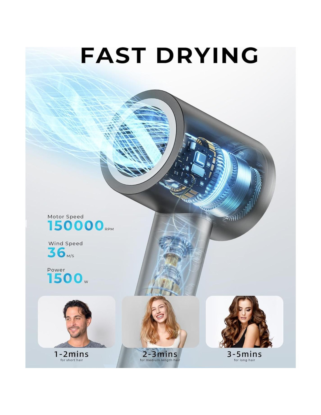 - MOTOR DE ALTA VELOCIDAD Y FLUJO DE AIRE PODEROSO - Este secador de pelo cuenta con un motor de alta velocidad de 150,000 RPM y una impresionante velocidad del viento de 36m/s, proporcionando un secado rápido para todo tipo de cabello. Un secador imprescindible para mujeres que necesitan un peinado rápido y eficiente