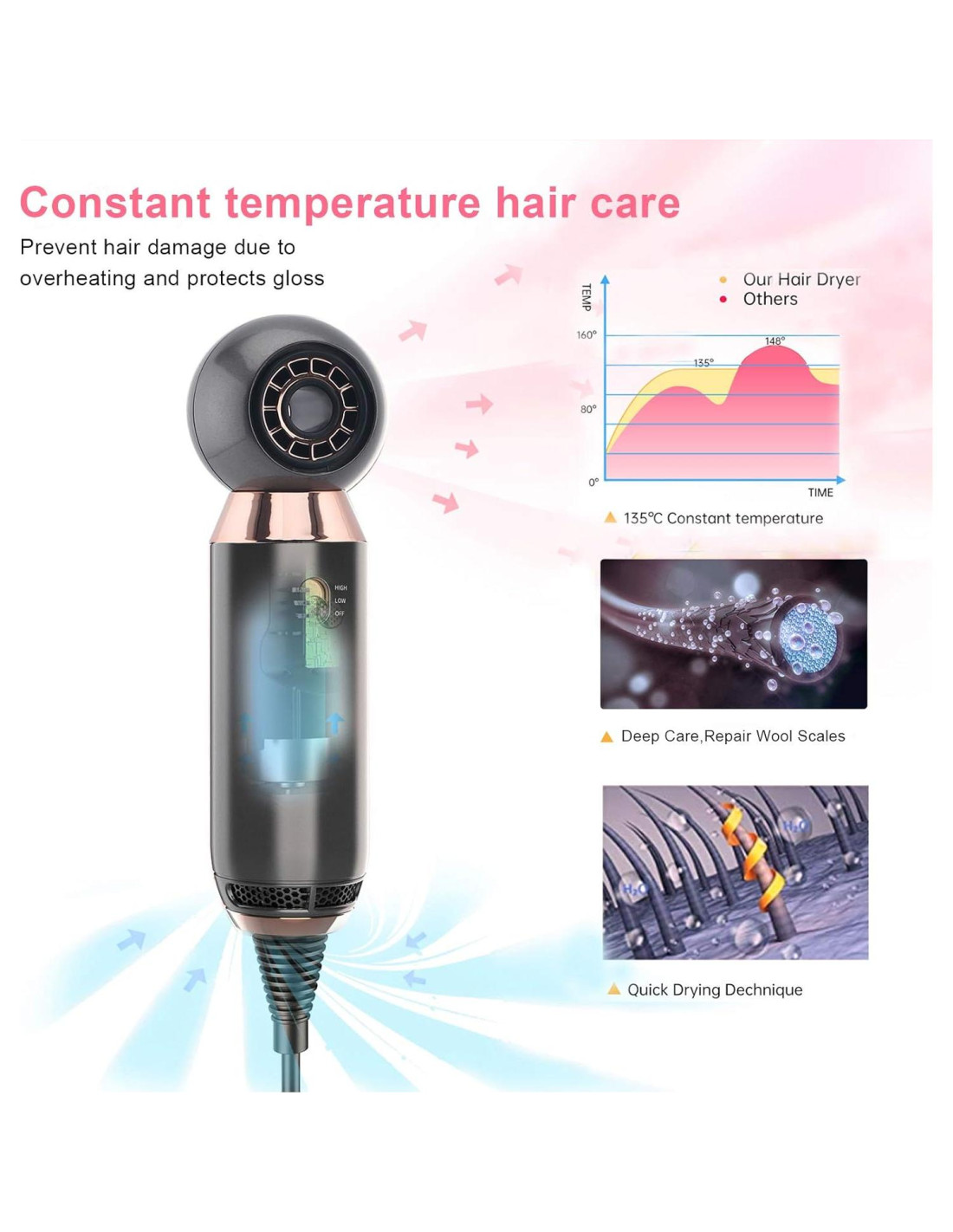 - TECNOLOGÍA IÓNICA Y TEMPERATURA CONSTANTE Secador de pelo con Tecnología Iónica Negativa, emitiendo enormes iones negativos con función de temperatura constante para eliminar el frizz, hace que el cabello esté más húmedo, suave, asegura el cuidado del cabello más saludable, protege el cabello de lo opaco o dañado.