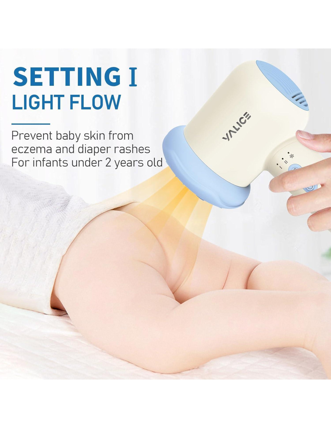 - FLUJO SUAVE PARA PROTEGER LA PIEL DEL BEBÉ: El secador de pelo para niños ofrece 3 modos de salida de aire. La configuración 1 de flujo de calor suave es adecuada para secar la piel del bebé. Este secador de pelo para niños puede prevenir eficazmente el eccema y las erupciones por pañal si secas rápidamente el cuerpo del bebé después de lavarlo y secarlo.