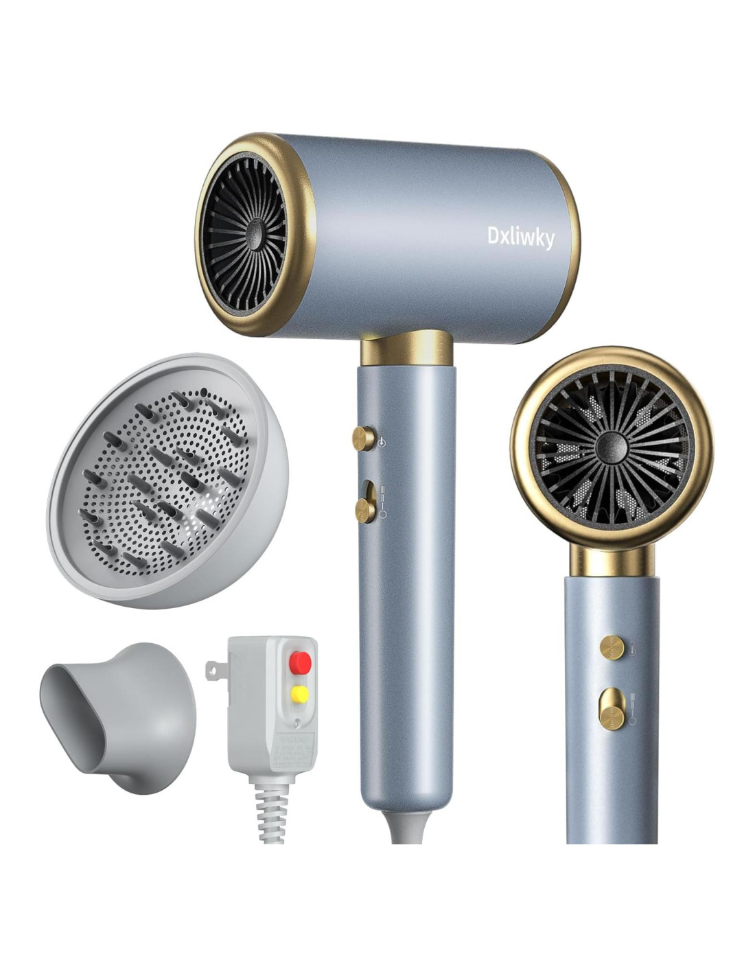 - 1875W Motor Potente, 2X Secado más Rápido para Ahorrar Tiempo. El secador de pelo Dxliwky está equipado con avanzadas aspas de ventilador sin polvo, alimentadas por motores altamente eficientes de 1875W que aseguran un flujo de aire fuerte y constante. Combinado con un diseño aerodinámico interno especialmente elaborado, un secado más rápido significa ahorro de tiempo y menos daño a tu cabello.