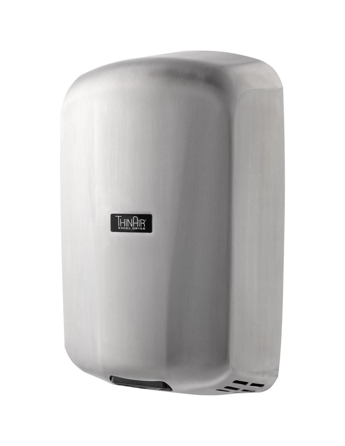 El modelo de secador de manos de alta velocidad y eficiente en energía Thin Air está montado en superficie y cumple con ADA. Seca las manos en 14 segundos* usando 950 vatios o menos, con un perfil más delgado para cumplir con los estándares de ADA.
