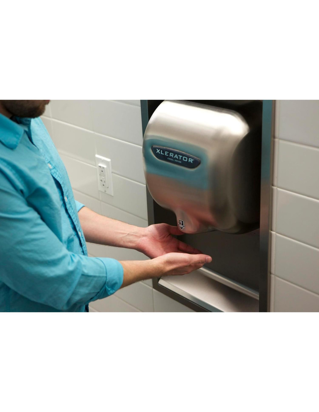 Este es un paquete de 2 del XL-C 110-120V. La placa de control recientemente mejorada cuenta con un Control de Velocidad y Sonido Ajustable, Calor Variable - Alto, Medio, Bajo y Apagado, y un LED visible externamente para ayudar con la solución de problemas. El único secador de manos que está Certificado como Hecho en EE. UU., el primero en estar listado en GreenSpec y ayuda a las instalaciones a calificar para varios Créditos LEED. Representa un ahorro del 95% en costos en comparación con las toallas de papel y elimina su mantenimiento y desperdicio mientras crea un ambiente de baño más higiénico. La carcasa está hecha de una aleación de zinc fundido de una sola pieza, resistente y a prueba de óxido. Reforzada con nervaduras para mayor resistencia y durabilidad. Acabado de cubierta cromada. Incluye hardware para montaje en superficie. Motor de 5/8 HP que ofrece 20,000 RPM con una velocidad de aire de 16,000 LFM (Pies Lineales por Minuto). 110/120V, 11.3-12.2 Amperios y. Elemento calefactor de alambre de nicromo proporciona 900W de calor. Sensor óptico infrarrojo activado. Mide 29.8 cm x 17.0 cm x 32.3 cm.