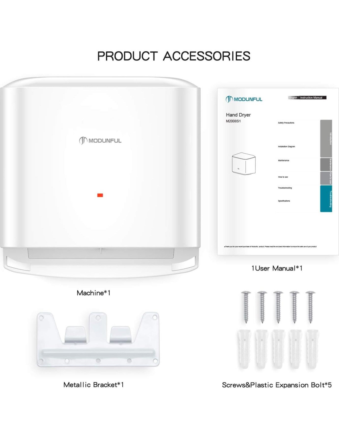 - Instalación fácil - Soporte metálico adjunto para colgar en la pared. Viene con cable de alimentación de 81.28 cm. Conéctalo directamente para abrir tu experiencia de secado perfecta. Tiempo de secado 11s. Diseño compacto, flujo de aire potente. Servicio a largo plazo