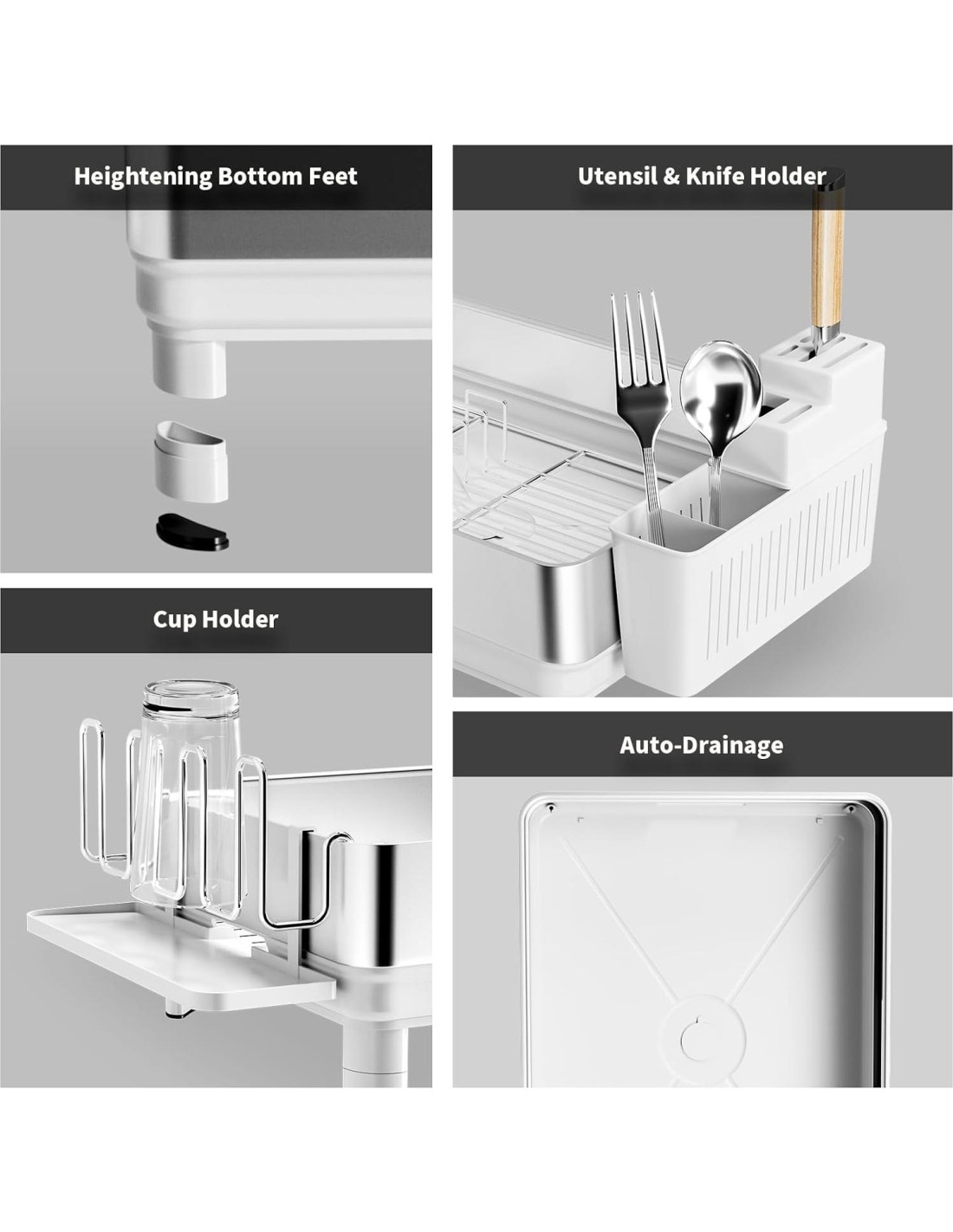 - Drenaje Automático: El agua del escurridor de platos, el soporte para tazas y el soporte para cubiertos se recogerá en la bandeja de drenaje y se drenará a través del pico. Mantiene tu cocina limpia y seca sin fugas, adecuado para diferentes diseños de cocina.