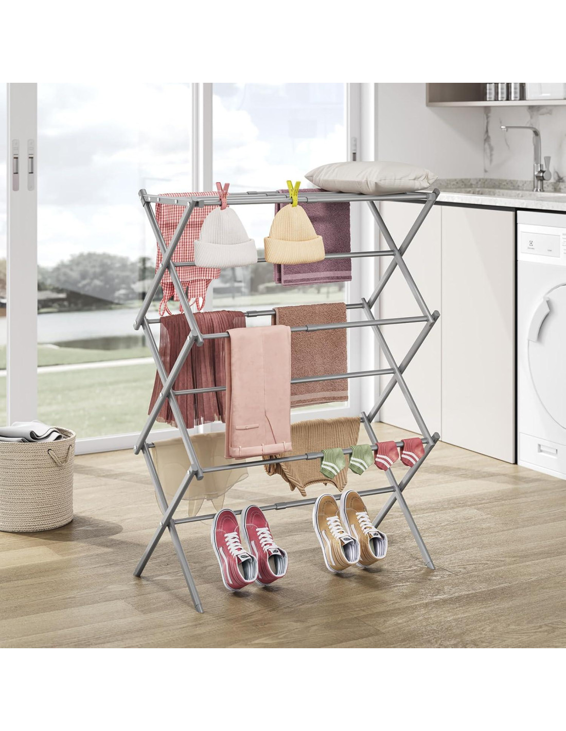 - Diseño Expandible: El estante de secado de ropa de 3 niveles cuenta con 11 varillas de secado de acero que se pueden extender de 17.13 a 29.33 pulgadas (43,5 a 74,4 cm) de longitud, proporcionando amplio espacio de secado para toallas, ropa, suéteres y más.