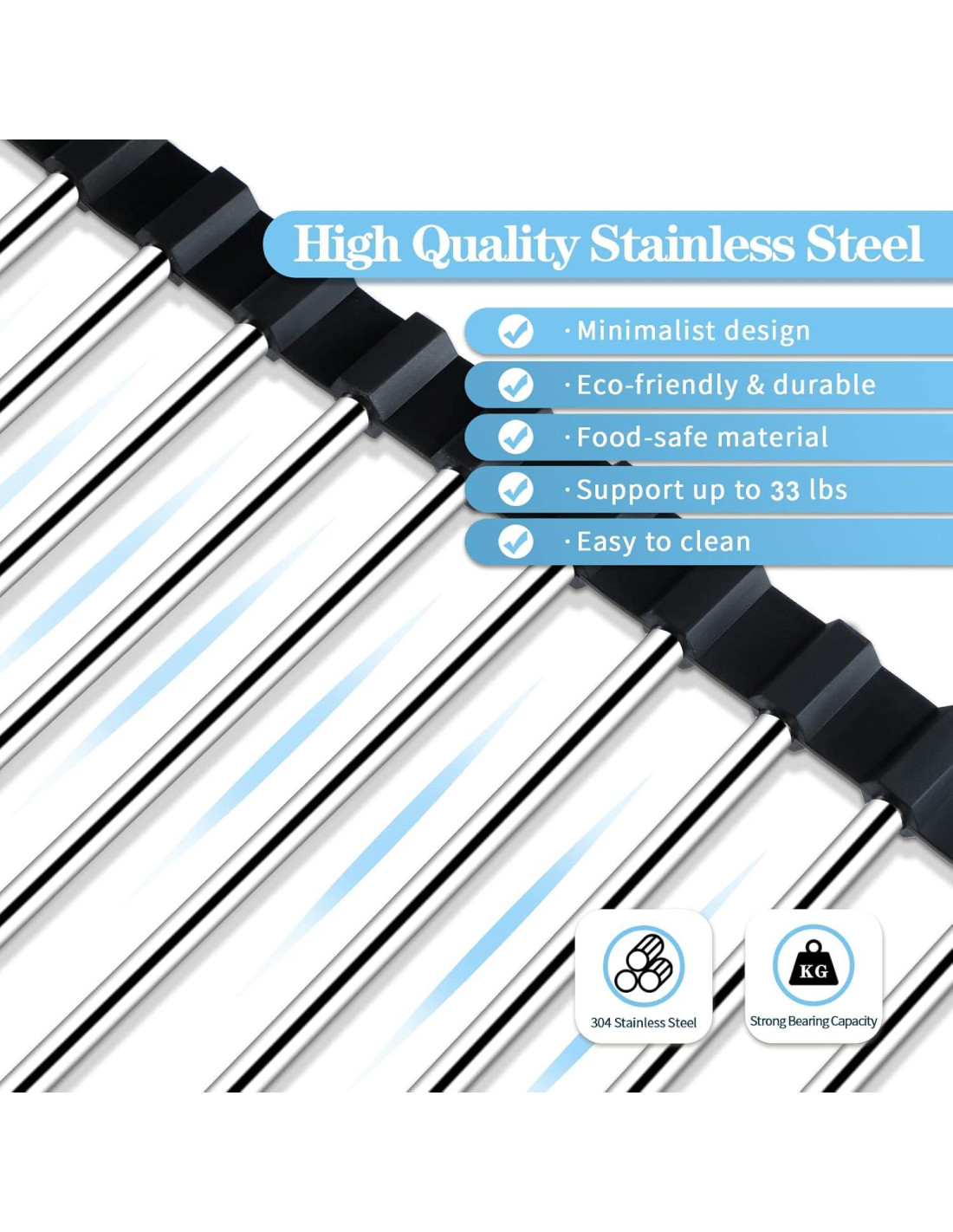 - ALTA CALIDAD: Hecho de acero inoxidable 304 con construcción resistente, la tabla de cortar plegable sobre el fregadero es robusta, resistente a la corrosión, antideslizante, impermeable; soporta hasta 15kg, no es fácil de doblar o torcer por utensilios de cocina pesados. Grandes esenciales de apartamento y accesorios para el hogar.