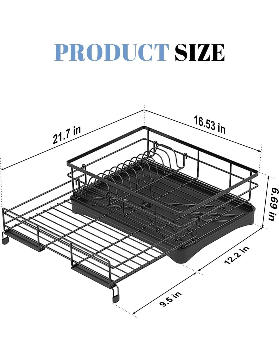 - Diseño Extensible y Moderno: Fabricado con acero al carbono de alta calidad, este escurridor de platos no solo es resistente y resistente a la corrosión, sino que también cuenta con un acabado negro suave que añade un toque de elegancia a tu encimera. El diseño es simple y moderno, tanto estéticamente agradable como práctico. El diseño expandible aumenta el espacio de uso del producto y mejora la capacidad de carga de la encimera. Los pies extensibles permiten que se ajuste a diferentes tamaños de fregaderos, y se puede retraer fácilmente después de su uso para ahorrar espacio en la encimera. (Asegúrate de insertar las patas COMPLETAMENTE, para que se bloqueen en su lugar y no se salgan al ajustarlas).