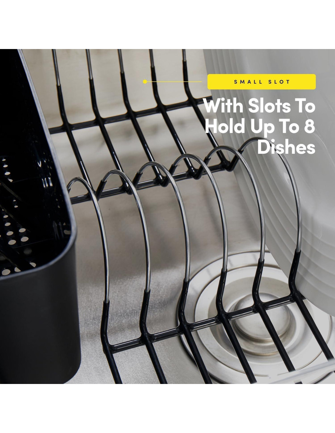- DISEÑO COMPACTO Y QUE AHORRA ESPACIO - Este pequeño escurridor de platos se ajusta dentro de la mayoría de los fregaderos de cocina estándar, manteniendo las encimeras libres de desorden mientras permite que los platos se sequen de manera eficiente.